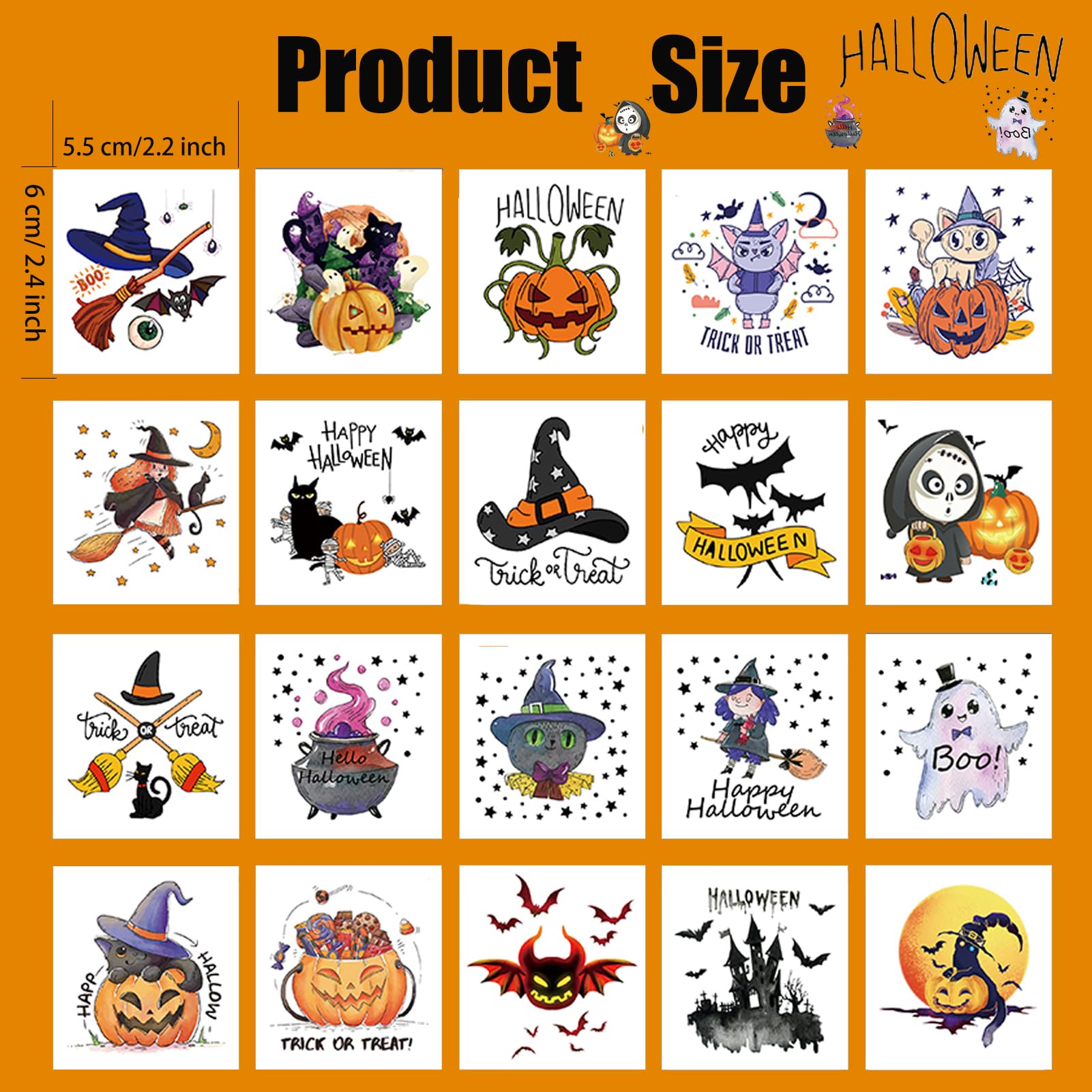 Halloween temporary tattoos for kids has 40 designs, including 20 different designs, each of which is 2.2 X 2.4 inches in size. In addition, each kids tattoos temporary has small and chic decorative patterns (such as bats and stars), making them even more vivid and interesting.