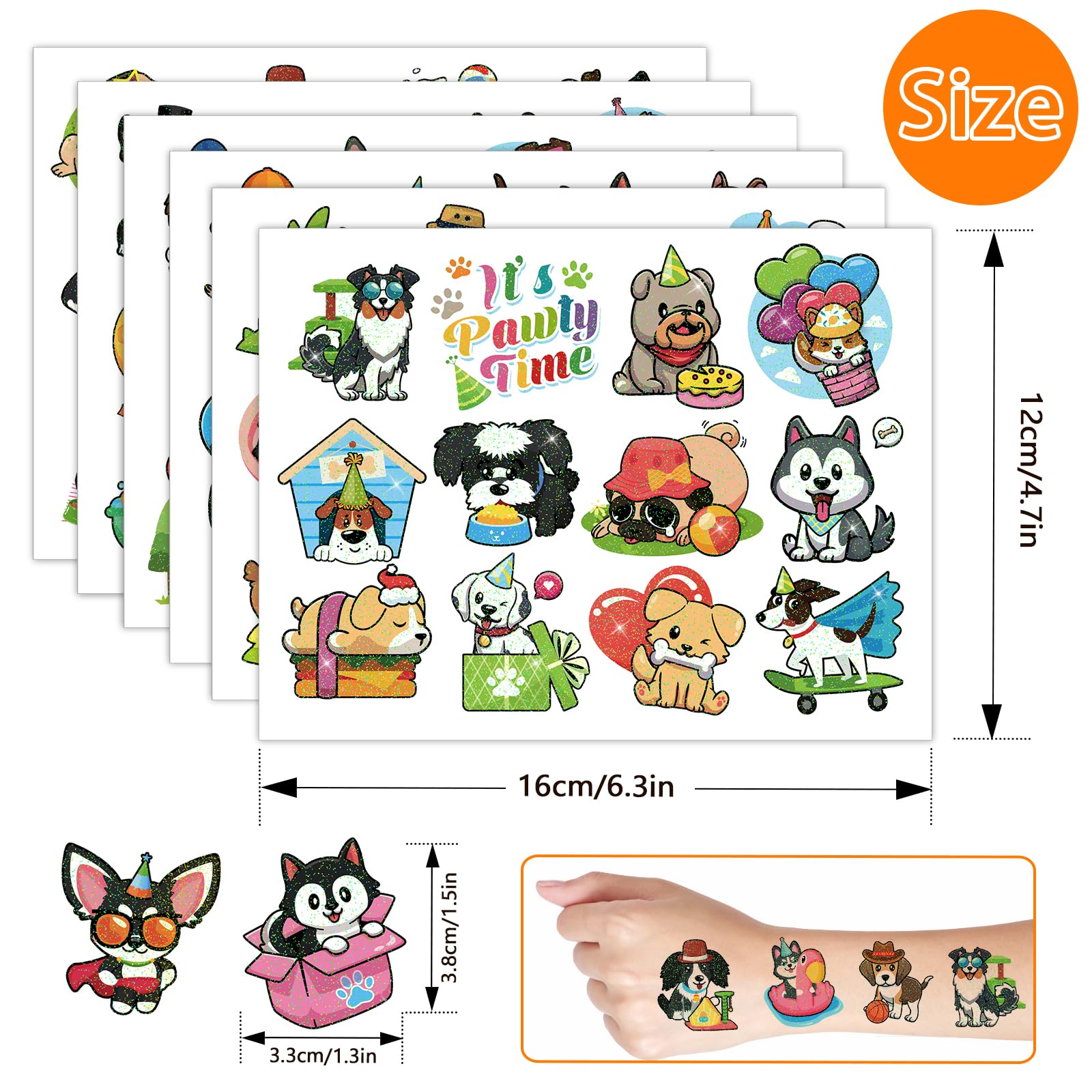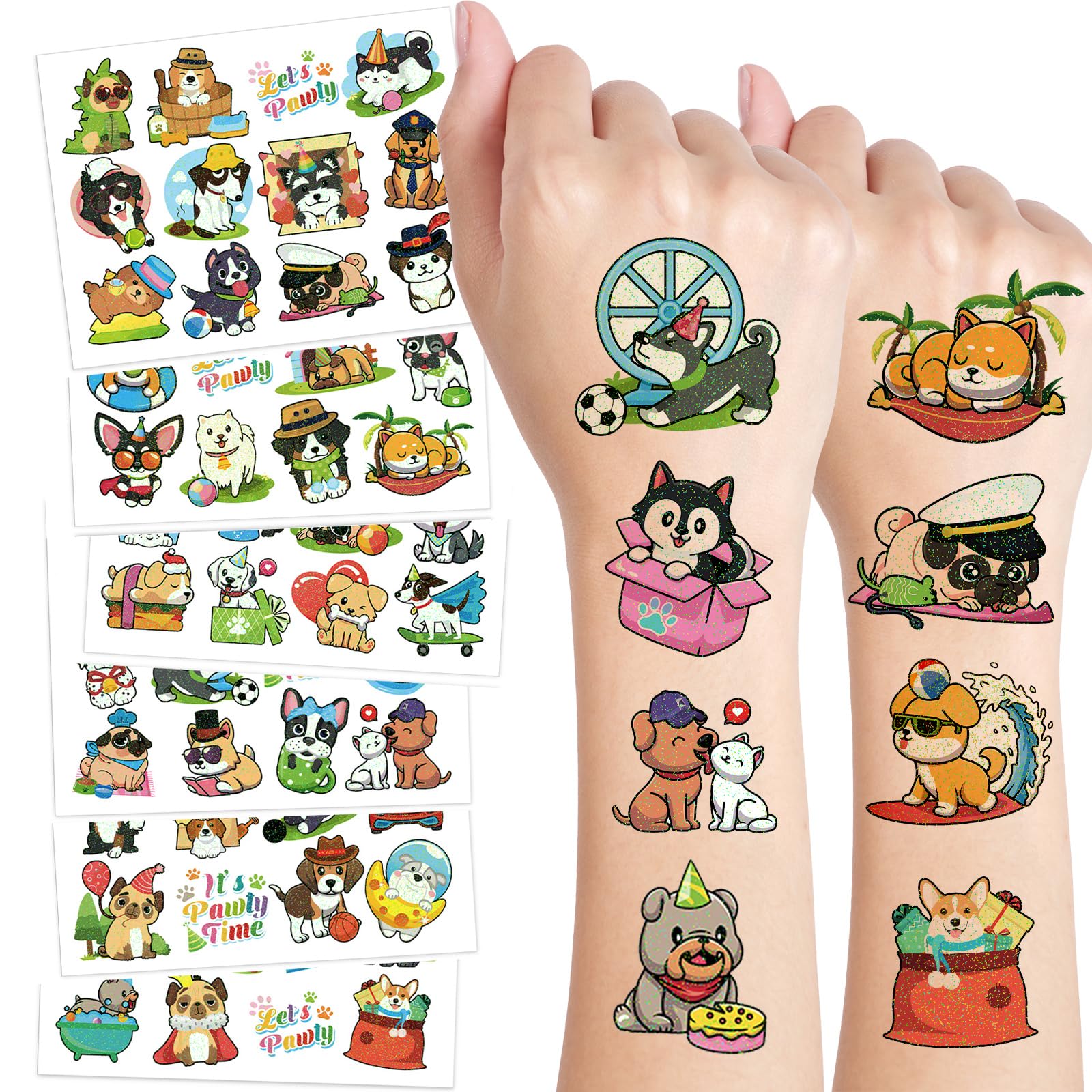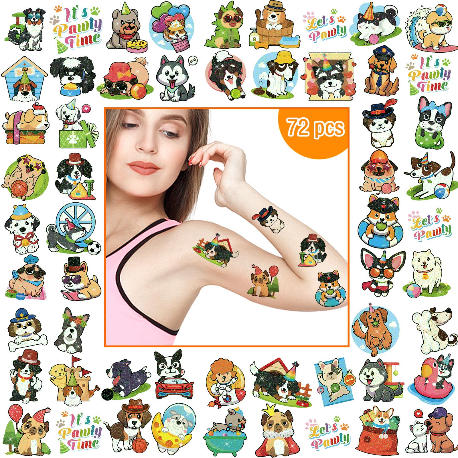 The kids tattoos temporary for girls boy come in 72 pcs glitter pattern styles. They look bright and vibrant and spirited, as if they give it life. Anyone can not refuse such a cute and charming pet dog tattoo, especially dog lover.