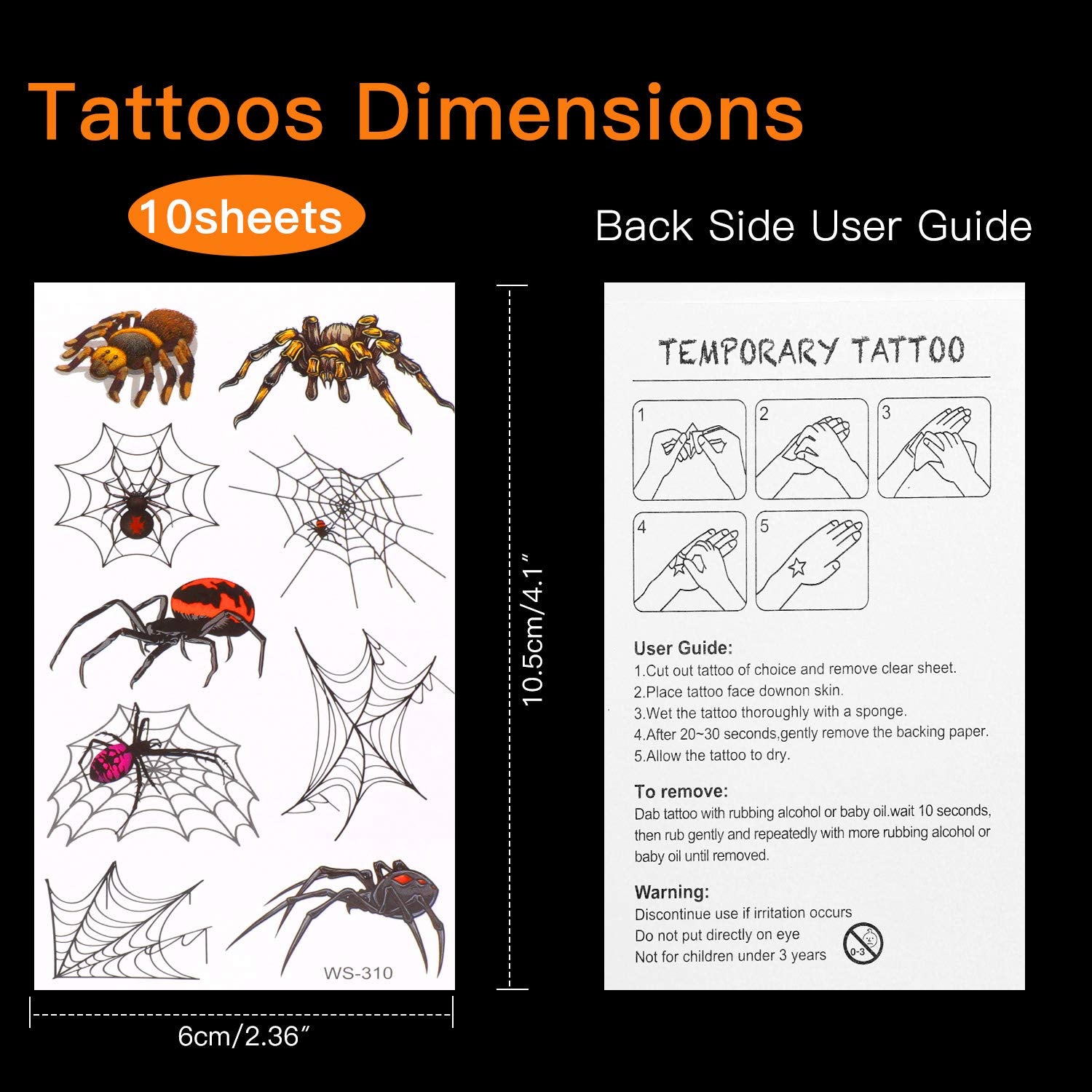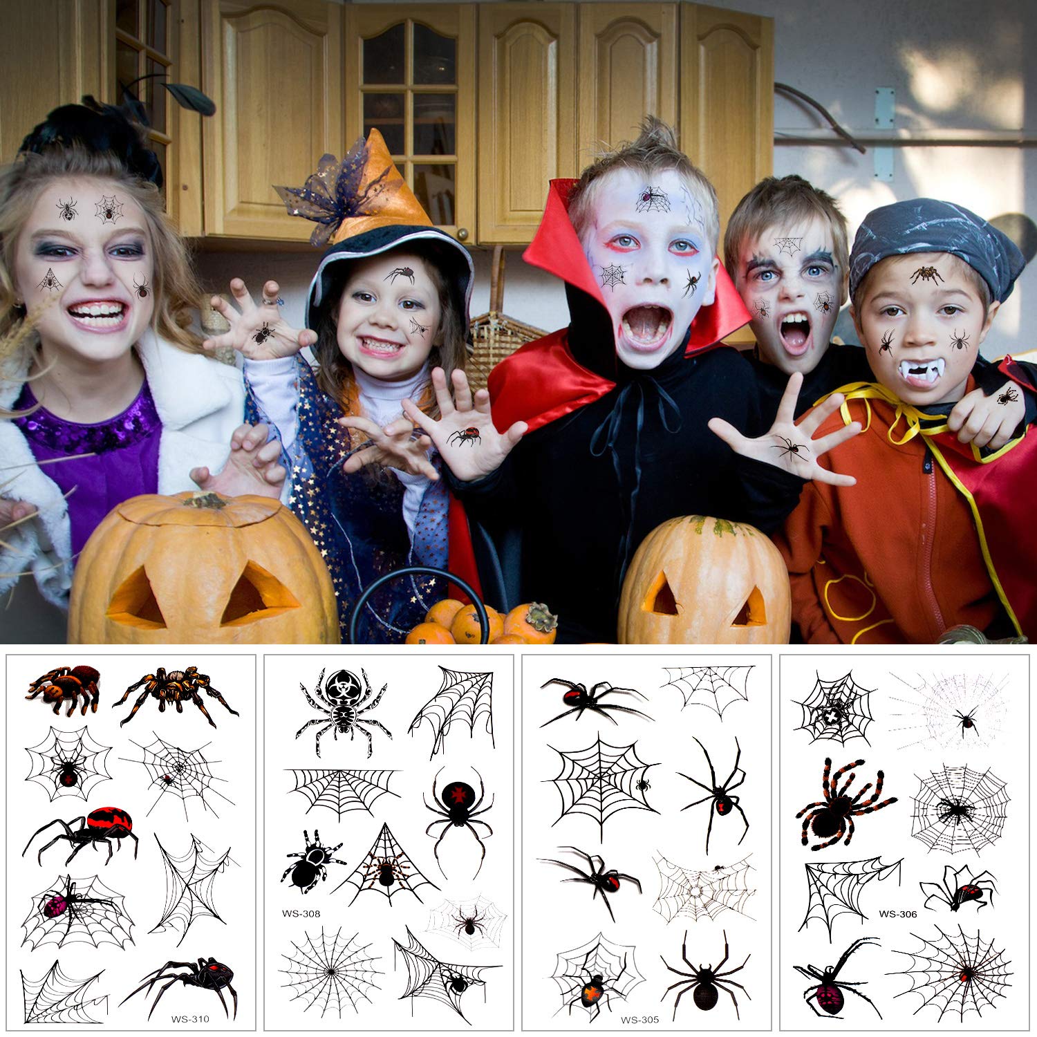 Konsait 86PCS Halloween Tattoos Spider Tattoos, Spider Web Spider Net Tattoos, Halloween Face Shoulder Arm Tattoo Stickers for Women Men Kids Boys Halloween Cosplay Accessories