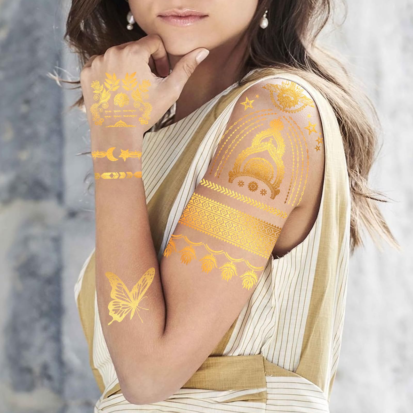 Our metallic tattoo are compliance with international standards. No harm to skin. Necessary festival accessories women and its more comfortable than jewels and didn't rub off all day even with the sun and sweat.