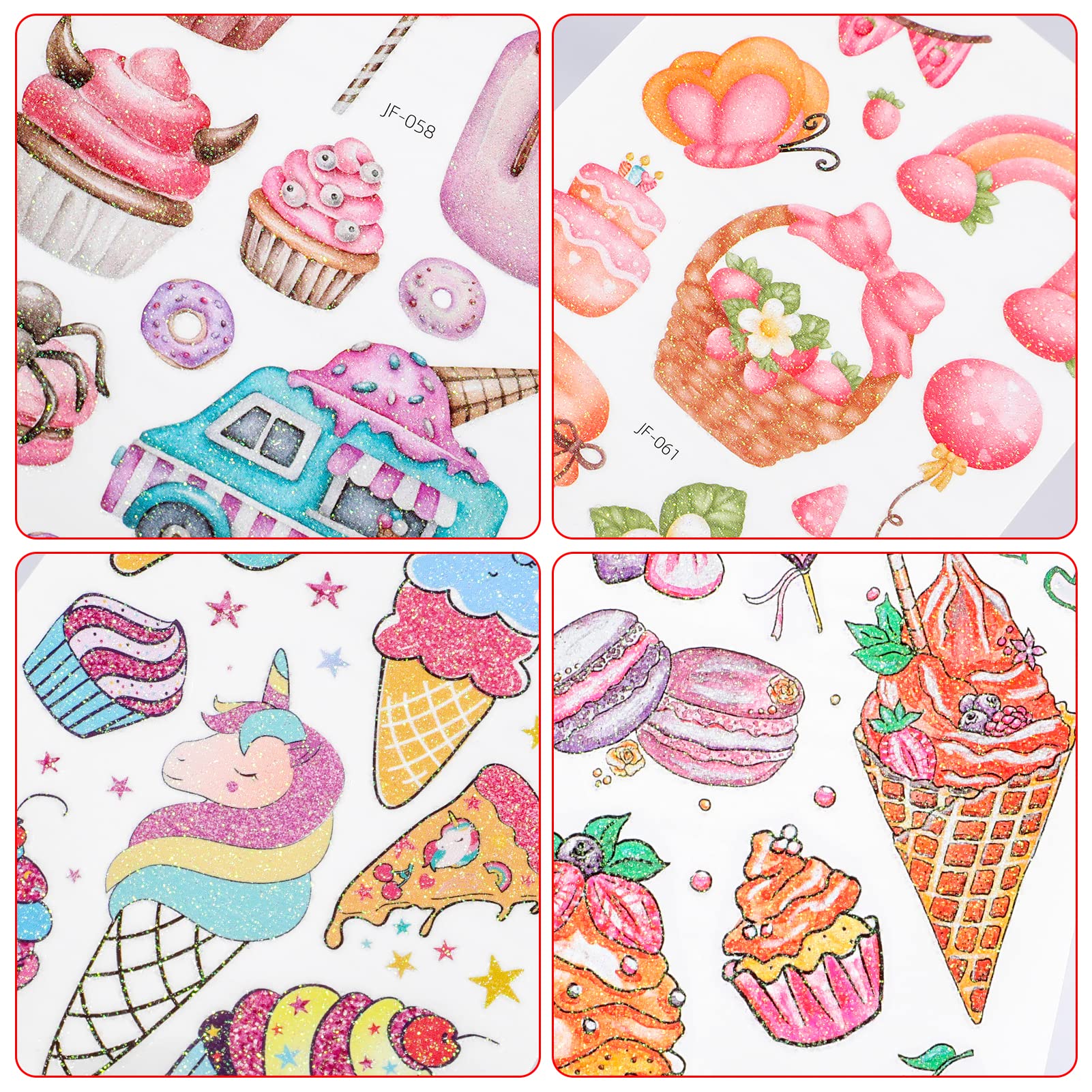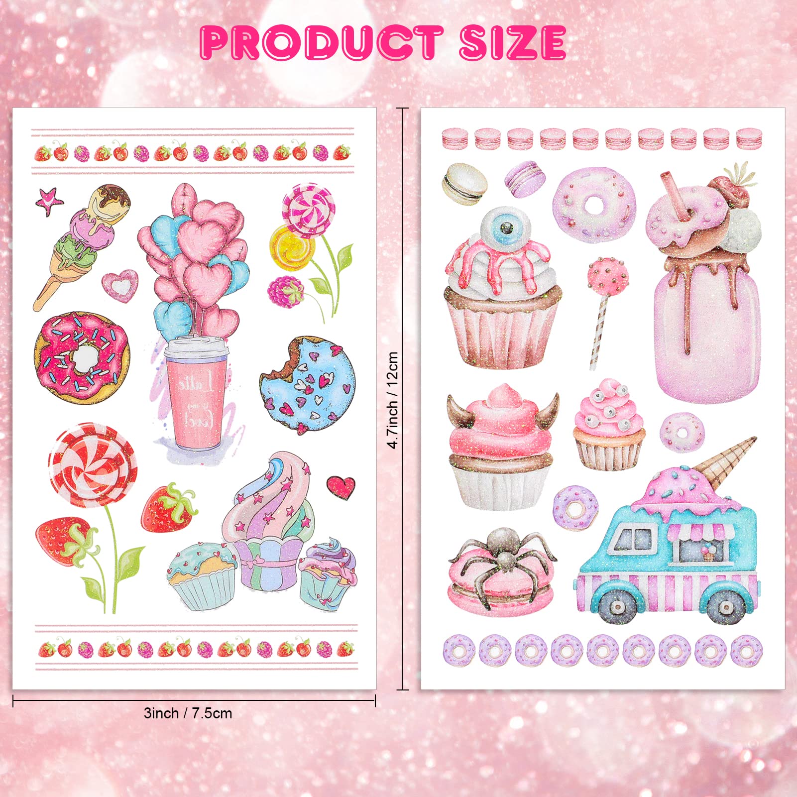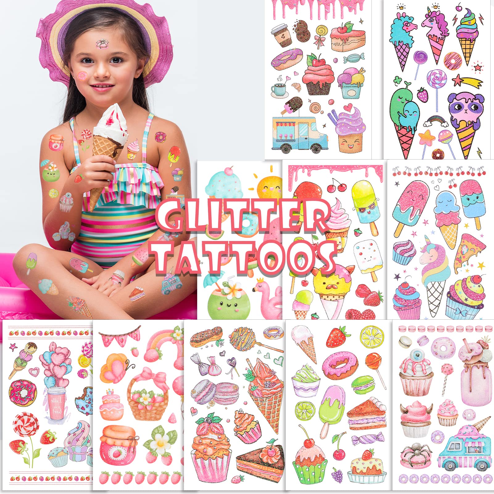 10 Sheets kids tattoos temporary for girls glitter dessert series tattoo stickers.