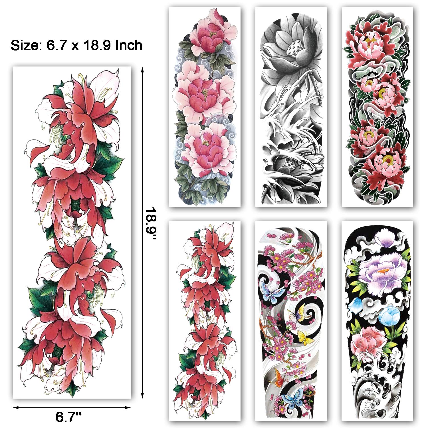 Kotbs 12 Sheets Full Arm Temporary Tattoo, Sexy Temporary Tattoos for Men Women Girls Flowers, Waterproof Full Arm and Half Arm Sleeves Body Tattoo Stickers