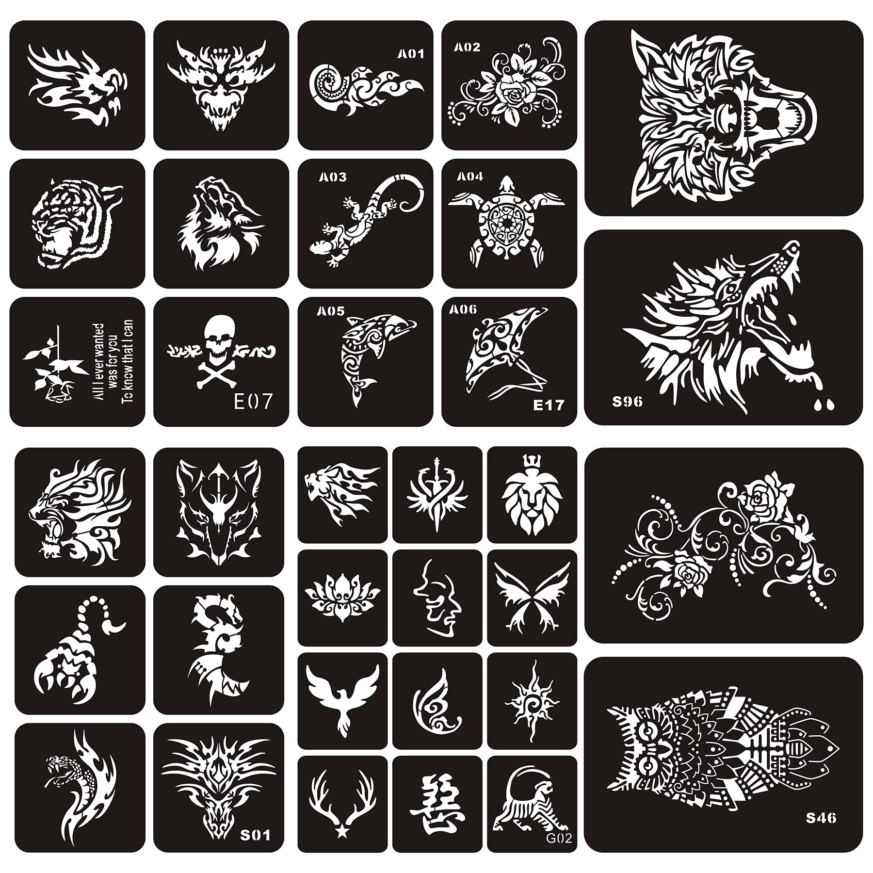 Kotbs 6 Sheets Temporary Tattoo Stencils, 34pcs Animal Tiger Wolf Totem Patterns Henna Tattoo Stencil Kit Temporary Glitter Airbrush Tattoo Stencils Arabian Tattoo Stickers for Face Body Paint Art