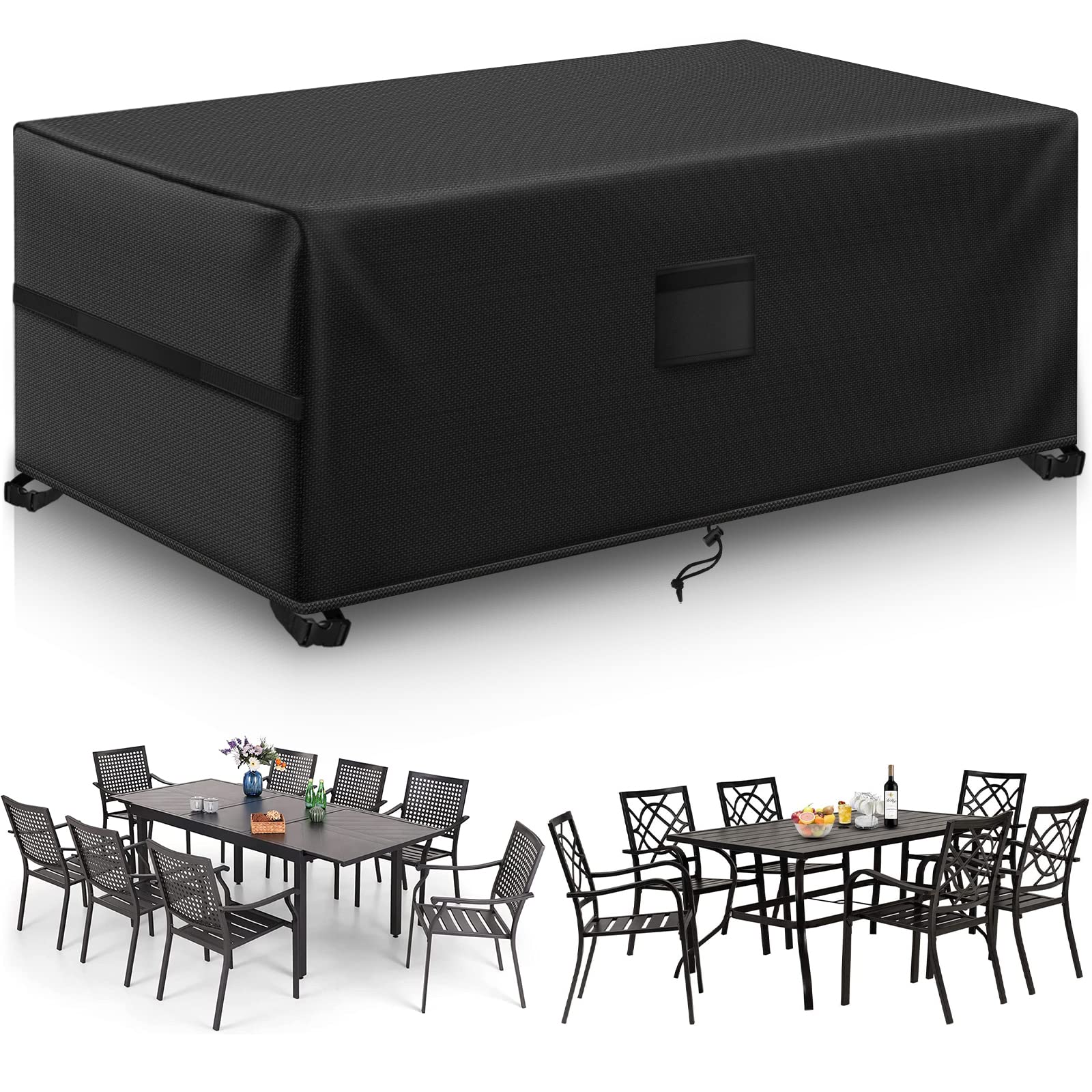 Kovshuiwe Garden Furniture Covers,170x94x70cm Patio Furniture Cover Waterproof, Table Covers 420D Heavy Duty Oxford Fabric Rattan Furniture Cover Windproof Anti-UV for Patio, Outdoor(Black)