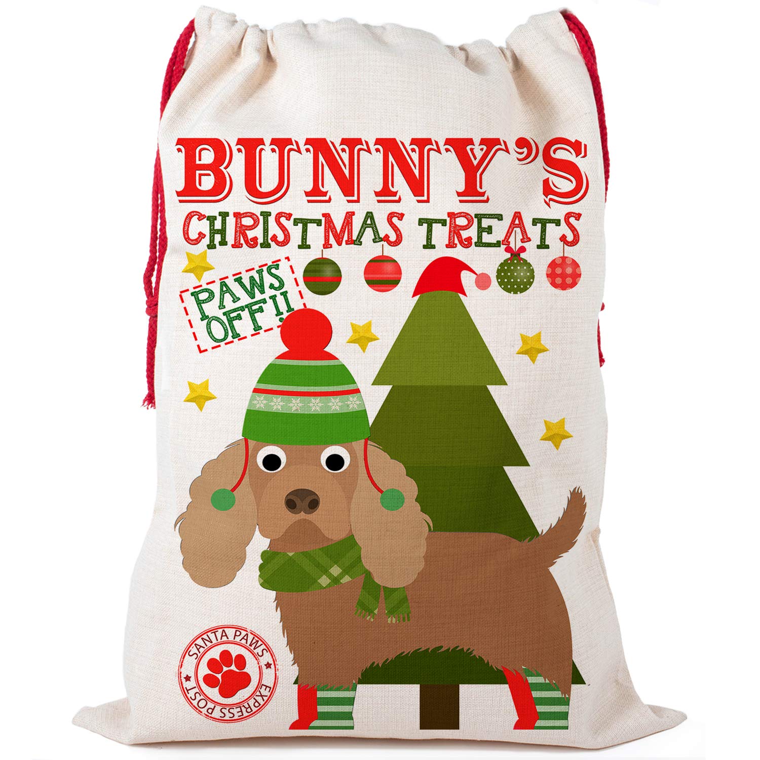 KRAFTYGIFTS Dog Christmas Sack Cocker Spaniel Pet Personalised Treat Bag CDS31 (Small)