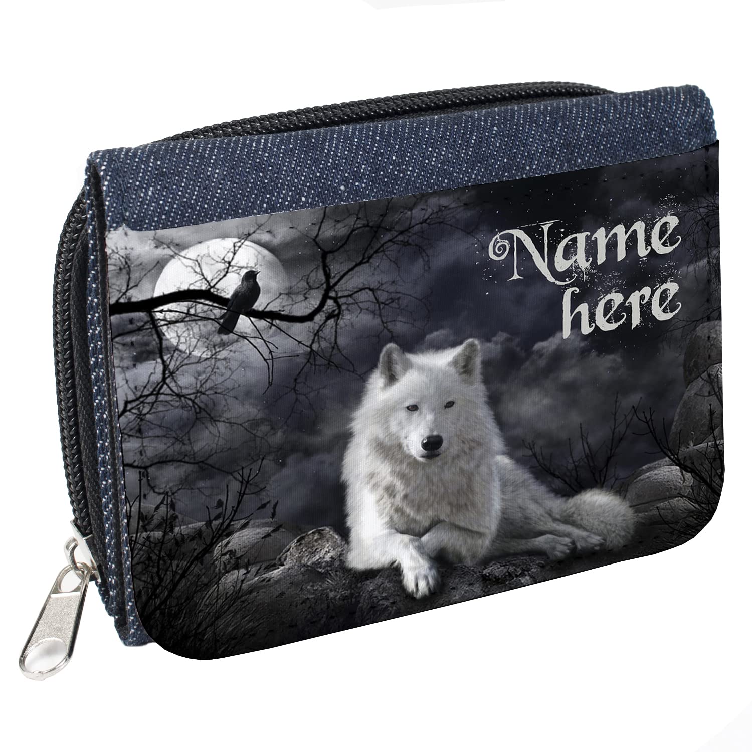 KRAFTYGIFTS Ladies Purse Personalised White Wolf Fantasy Womens Denim Coin Wallet Gift ST732