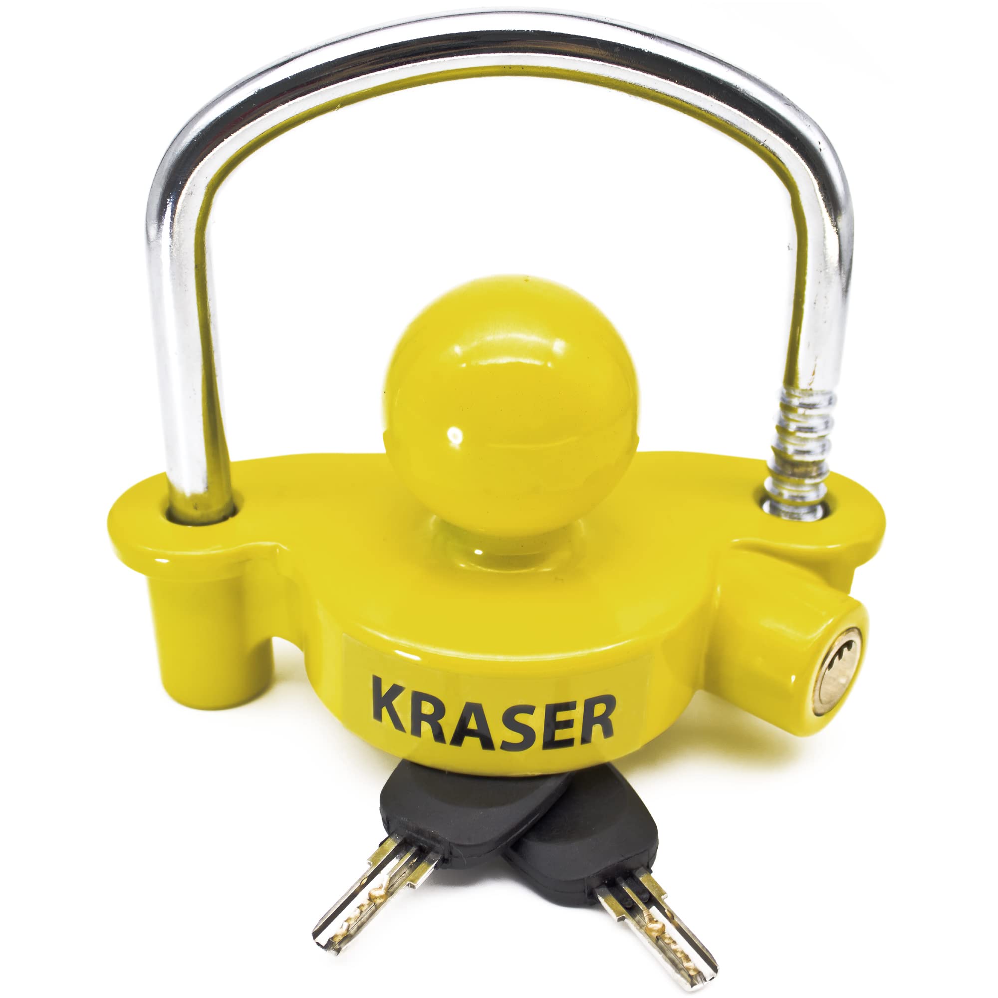 KRASER KR815 Trailer Coupler Lock, Anti-Picking Anti-Drilling Curved High Security Key, Heavy Duty Reinforced Steel, Bright Yellow More Deterrent, Adjustable Storage Security, Trailer Locks Ball Hitch