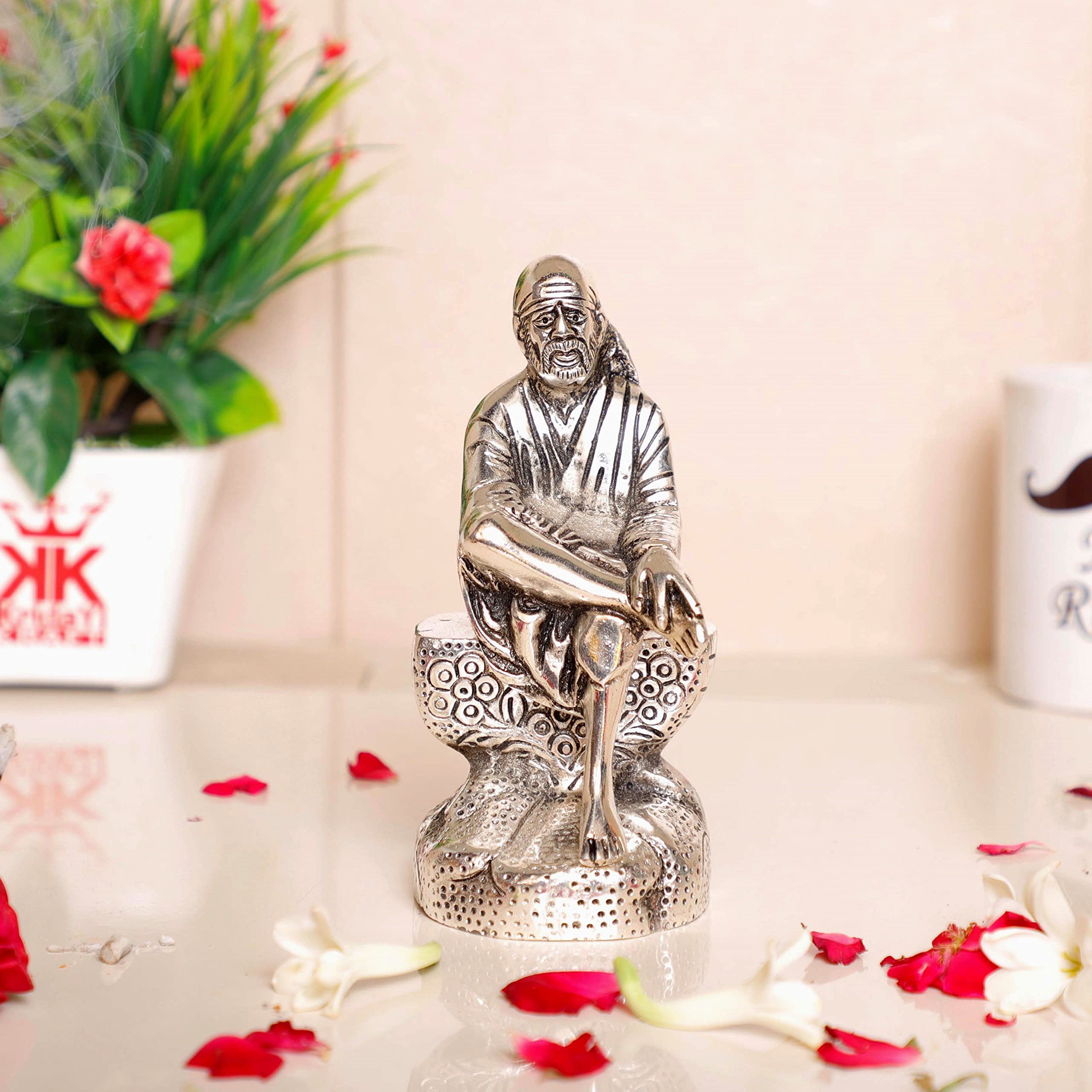 This amazing piece of art by kridaykraft is a Sai baba in antique Silver finish in metal. Shirdi Sai baba, was a spiritual master who was and is regarded by his devotees as a saint, fakir, avatar (an incarnation of god) or sadguru, according to their individual proclivities and beliefs. He was revered by both his Muslim and Hindu devotees and during, as well as after, his life on earth it remained uncertain. This however was of no consequence to Sai baba himself. Sai baba stressed the importance of surrender to the guidance of the true sadguru or murshad, who, having gone the path to divine consciousness himself, will lead the disciple through the jungle of spiritual training. The radiance and the shine are very attention seeking. This piece of ultra royal artefact can be used to beautify your interiors. It can be gifted to your near and dear ones.Our White Metal Silver Plated Sai Baba is an impressive piece of art that is made from the finest-grade raw materials and intricately designed by our teams of adroit designers and craftsmen using high-end technologies.