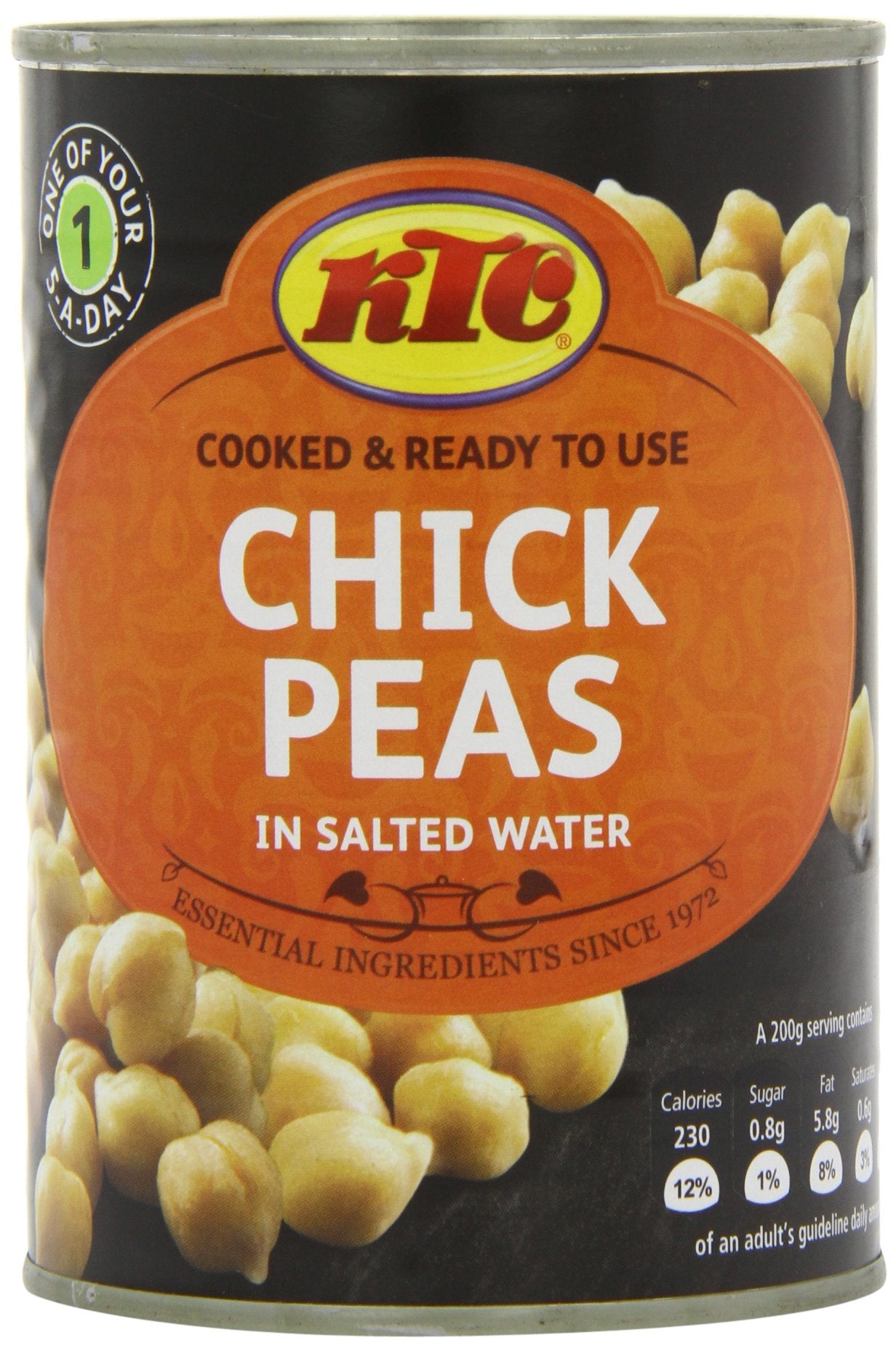 DescriptionProduct DescriptionKTC Chick Peas In Salted Water 400g. Cooked & ready to use. 1 of your 5 a day. High in protein and fibre. Suitable for vegetarians. KTC started in 1972 from a grocery store in the heart of England. From humble beginnings they have always prided themselves on providing the finest foods to help you create authentic Asian cuisine wherever you are in the world. At KTC, They are experts in the provision of ethnic and mainstream food products. Store in a cool dry place.IngredientsChick Peas (60%), Water, SaltBox ContainsKTC Chick Peas Can 400 gManufacturer Contact InformationKTC Chickpeas 400g