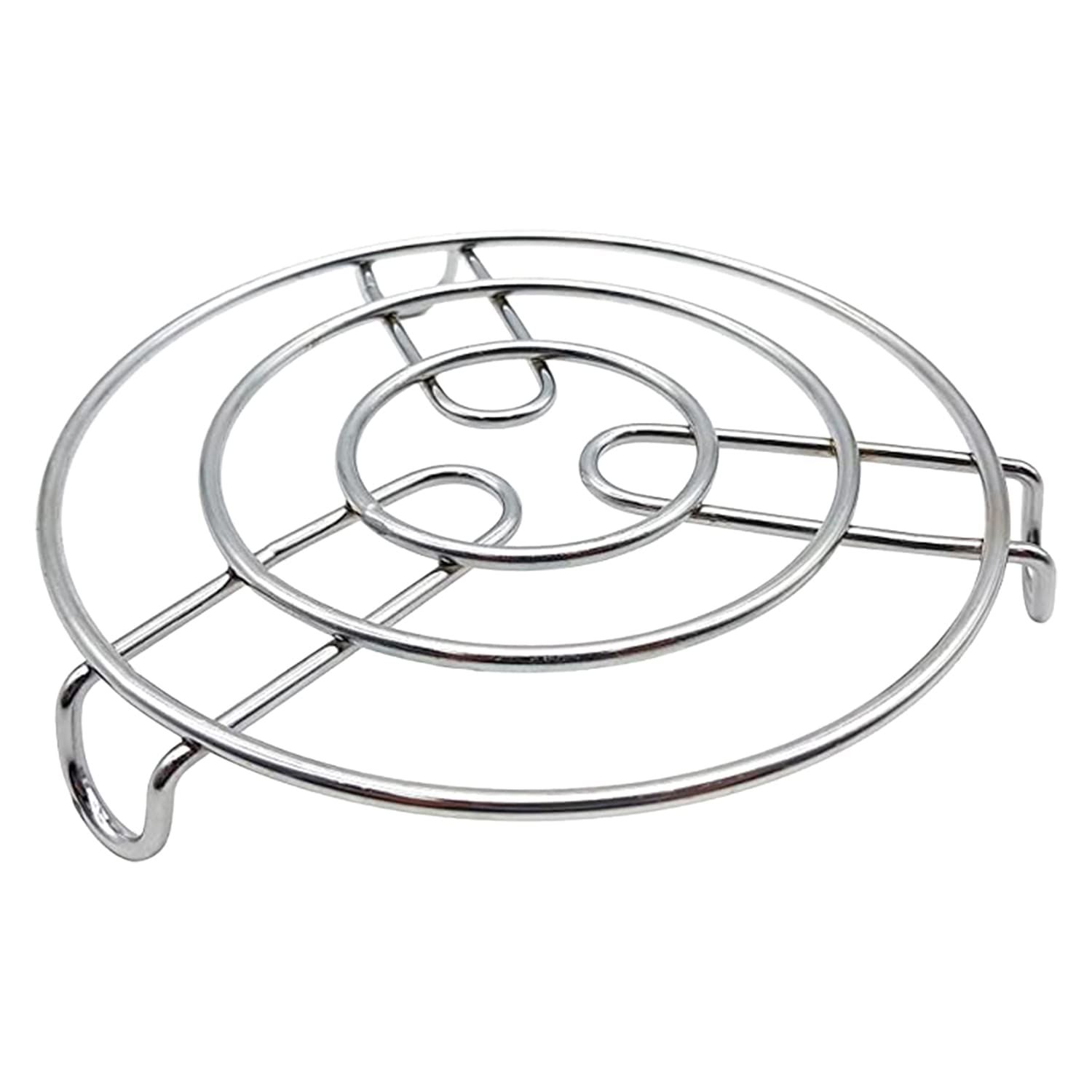 Kuber Industries Iron Stand | Stainless Steel Trivet |Round Steamer Rack for Kitchen | Heat Resistant Hot Plate Dishes Holder | Cooker Donga Stand | Silver