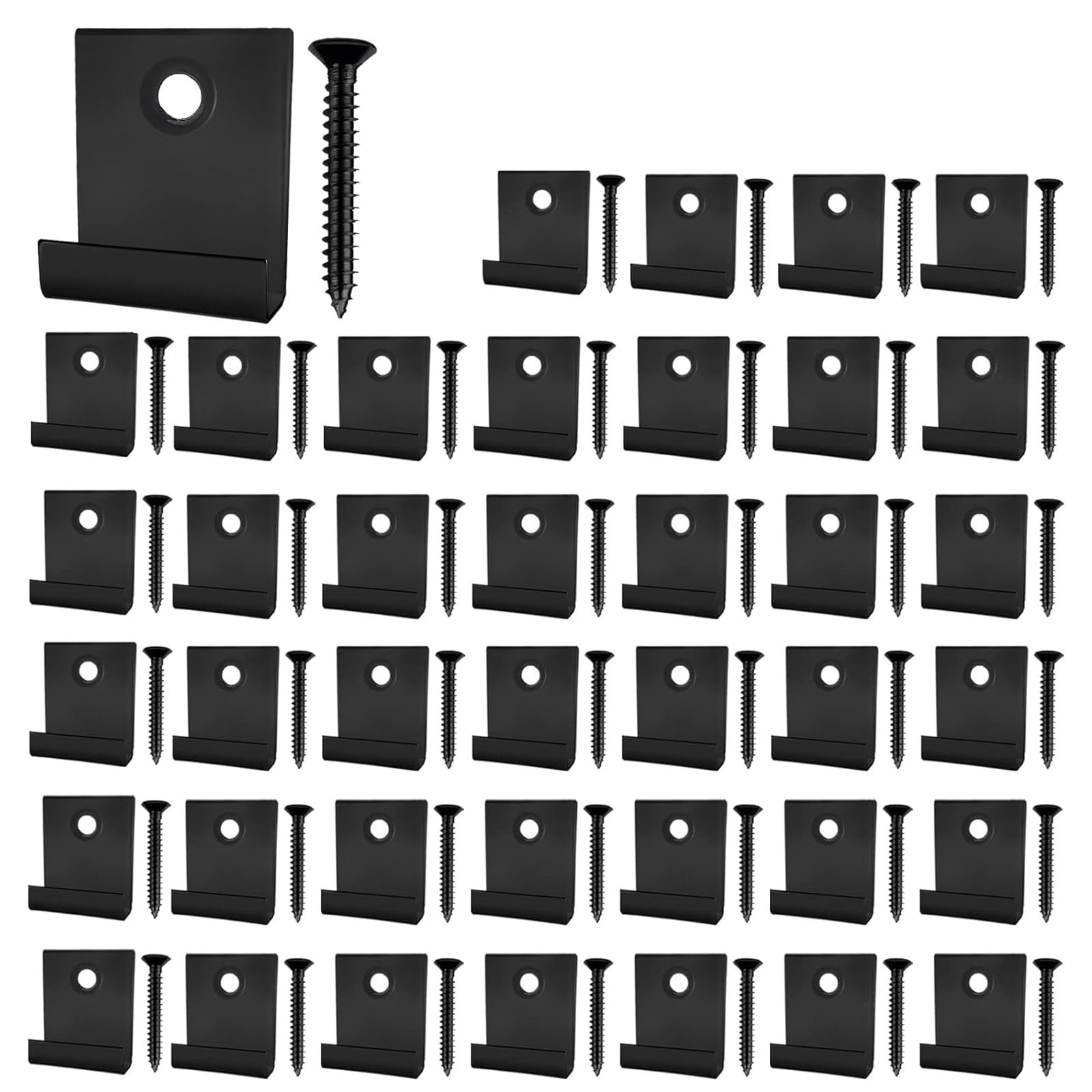 Kukujiwa 40 Pcs Composite Decking Clips, Decking Hidden Starter Fastener Board Clips With Self-Tapping 40Pcs Screw Stainless Steel Diy Hardware (Black)