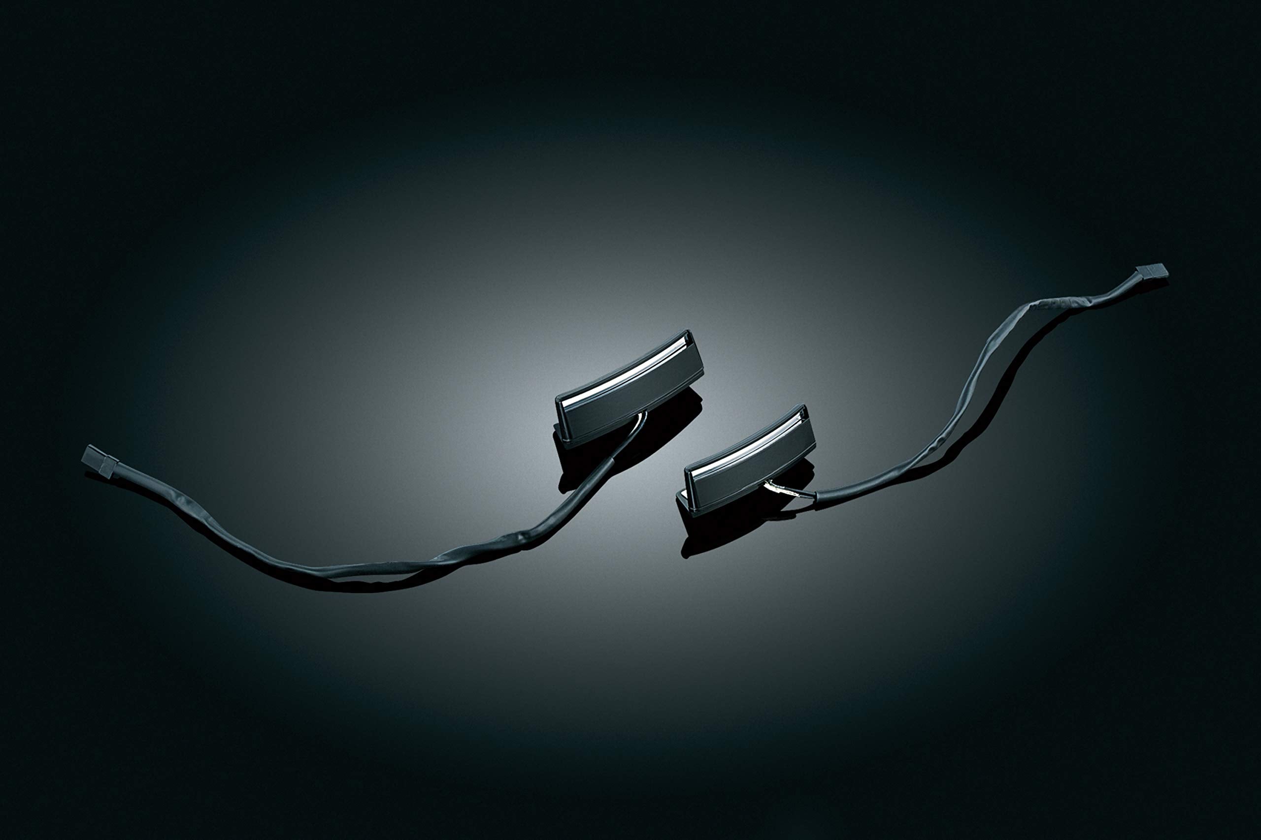 The Kuryakan 7513 L.E.D. Mirror Lights have a slim design & don't interfere with the viewable mirror surface. They feature perfect L.E.D. lighted accents that finishes off the Fairing Light II for your complete look. Oh, and functionally, they add a ton of visibility! These LED accent lights shine that beautiful Amber glow. Includes (2) LED Mirror Lights; suggested tools for smooth installation: Phillips screwdriver, Wire stripper, Soldering supplies, Electrical tape. This Kuryakyn part is most compatible with Gold Wing: '01-'17 GL1800 Models (Except F6B), Gold Wing Note: Mirror lights require hard-wire installation when installed without additional Kuryakyn front turn signal accent lighting.