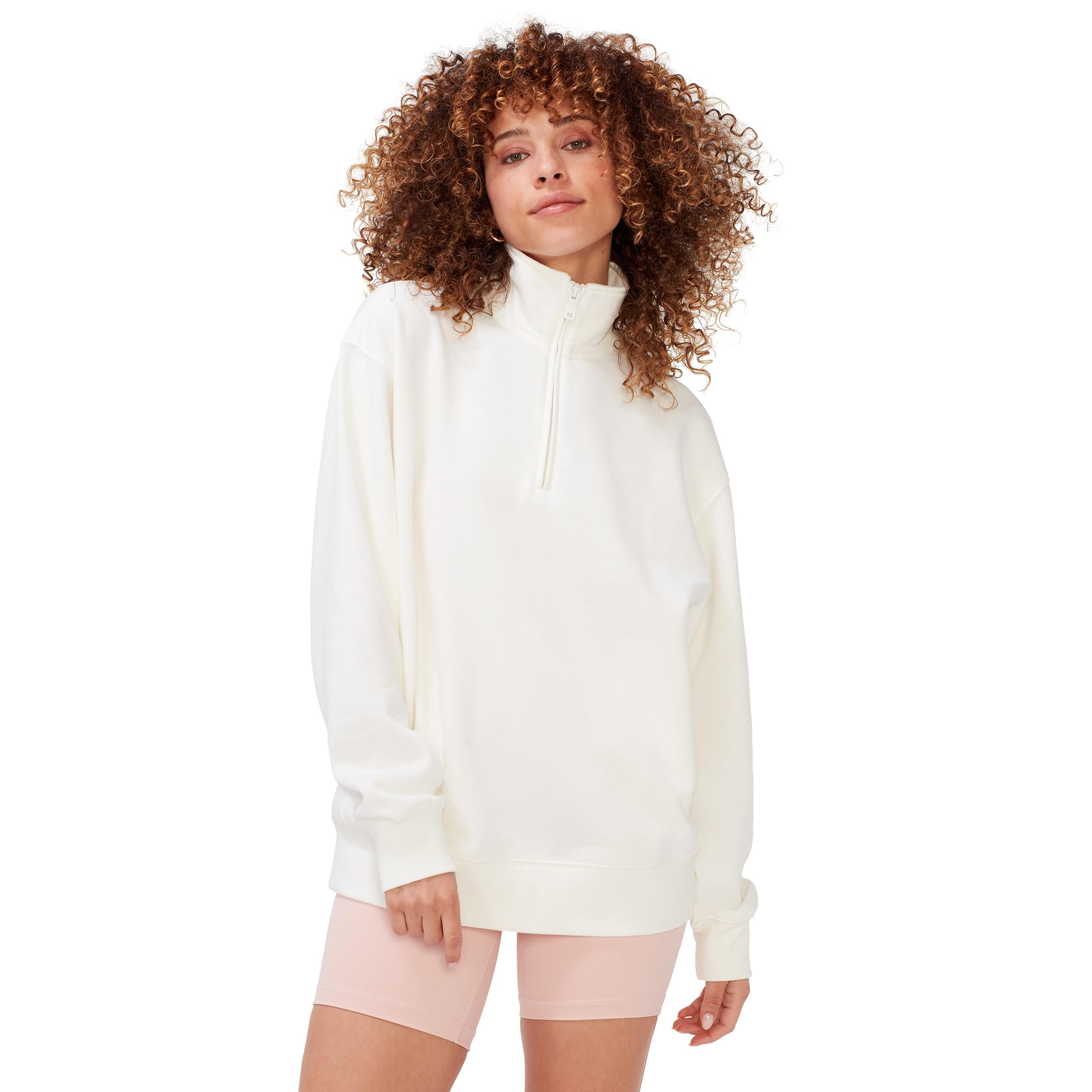 Step into a world of unmatched comfort and style with KUT & SO's Oversized Quarter Zip Sweatshirt. Every stitch, every detail has been thoughtfully designed-from its plush midweight fleece blend to the stylish 1/4 zip pullover facade. A true reflection of modern design, this pullover combines the relaxed vibes of an oversized zip-up hoodie for women with the elegance of a mockneck, culminating in a piece that’s both chic and cozy. But it doesn’t stop at aesthetics-KUT & SO prides itself on ethical manufacturing, ensuring that as good as you look, you feel even better about your clothing choices. For an effortless blend of style, comfort, and responsibility, KUT & SO is the name to trust.