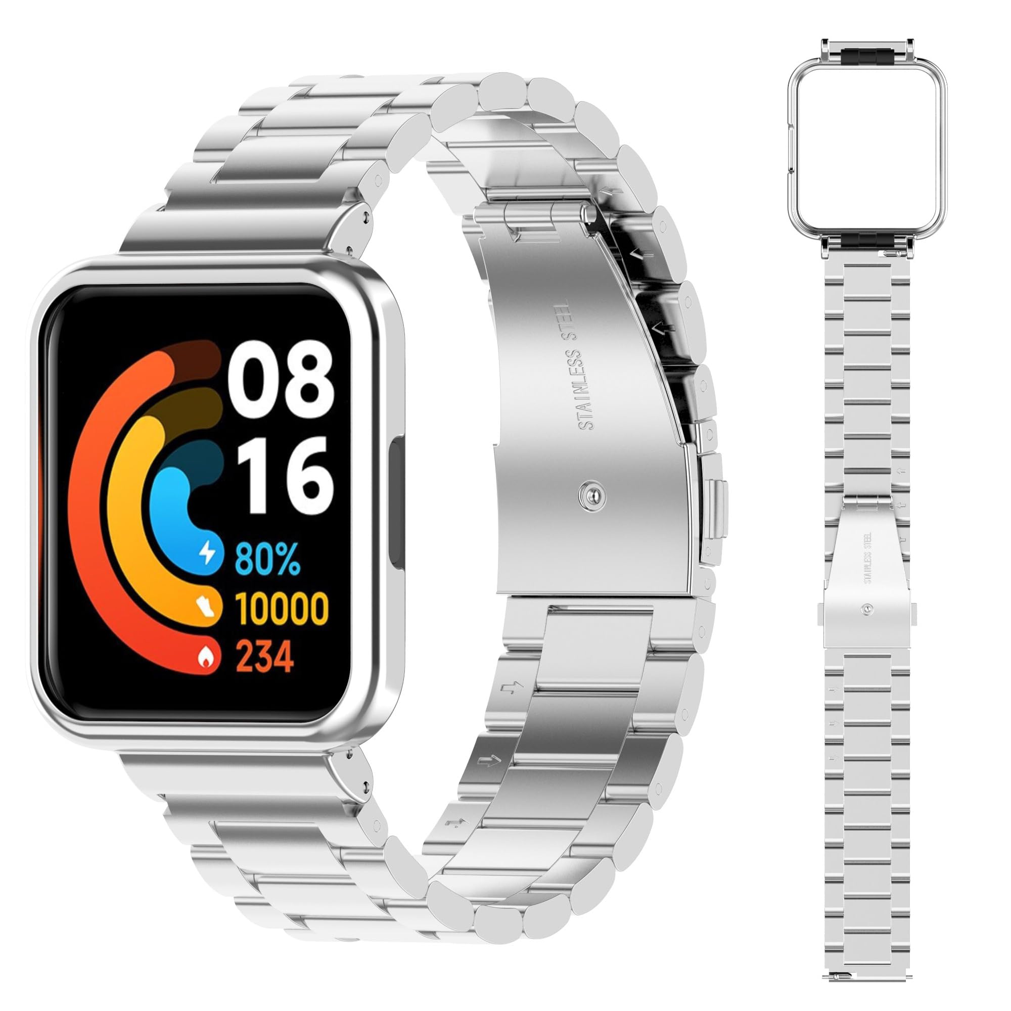 KUTEWEU Metal Strap Compatible with Xiaomi Redmi Watch 2 Lite, with Stainless Steel Protective Case Metal Stainless Steel Wristband Adjustable Replacement Strap for Redmi watch 2 Lite (Silver)