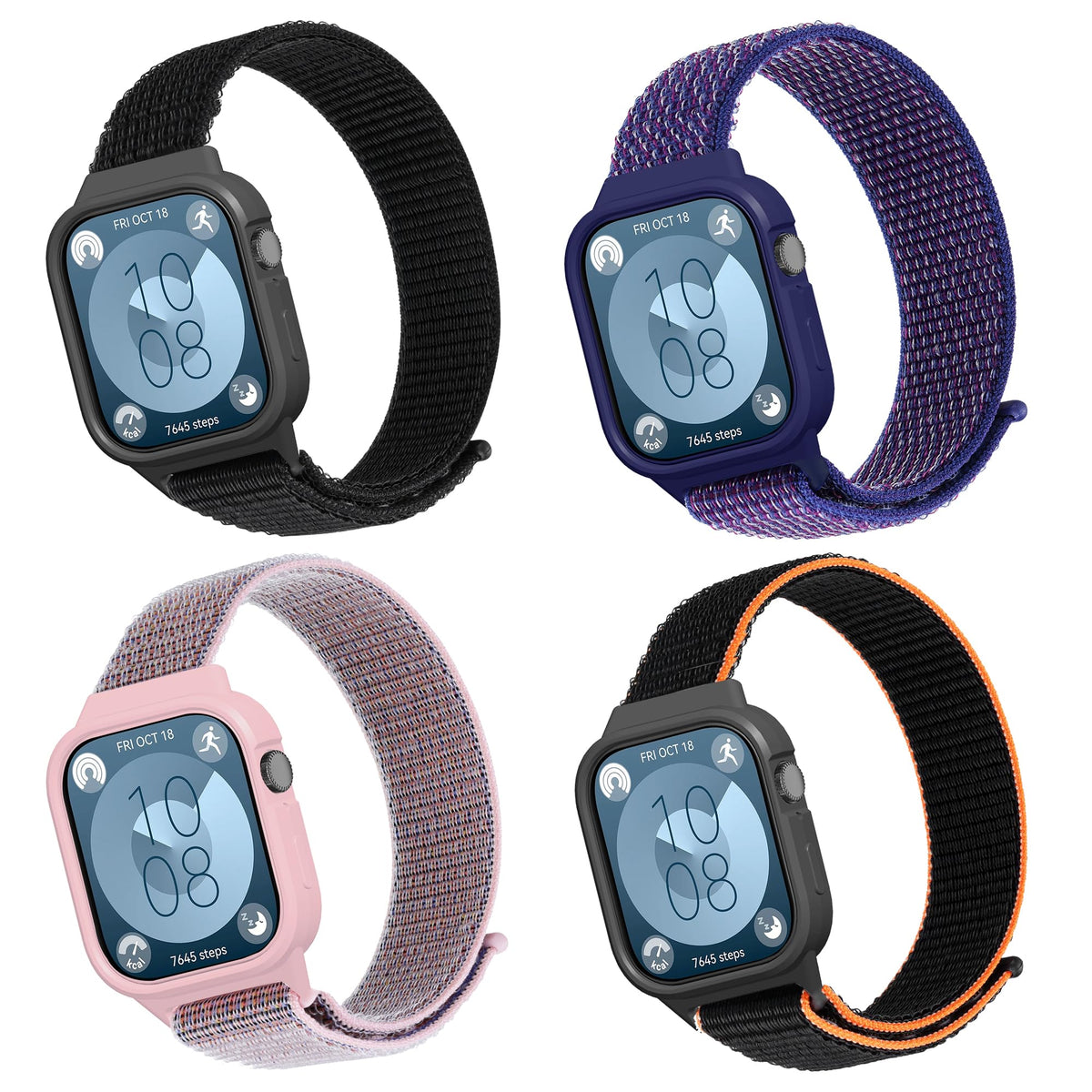 KUTEWEU Nylon Strap with Soft Cover for Huawei Watch Fit 3, Breathable Elastic Bracelet, Adjustable Straps Replacement Band Sport Watchband for Huawei Watch Fit3 (Black+Blue+Pink+Black Orange)