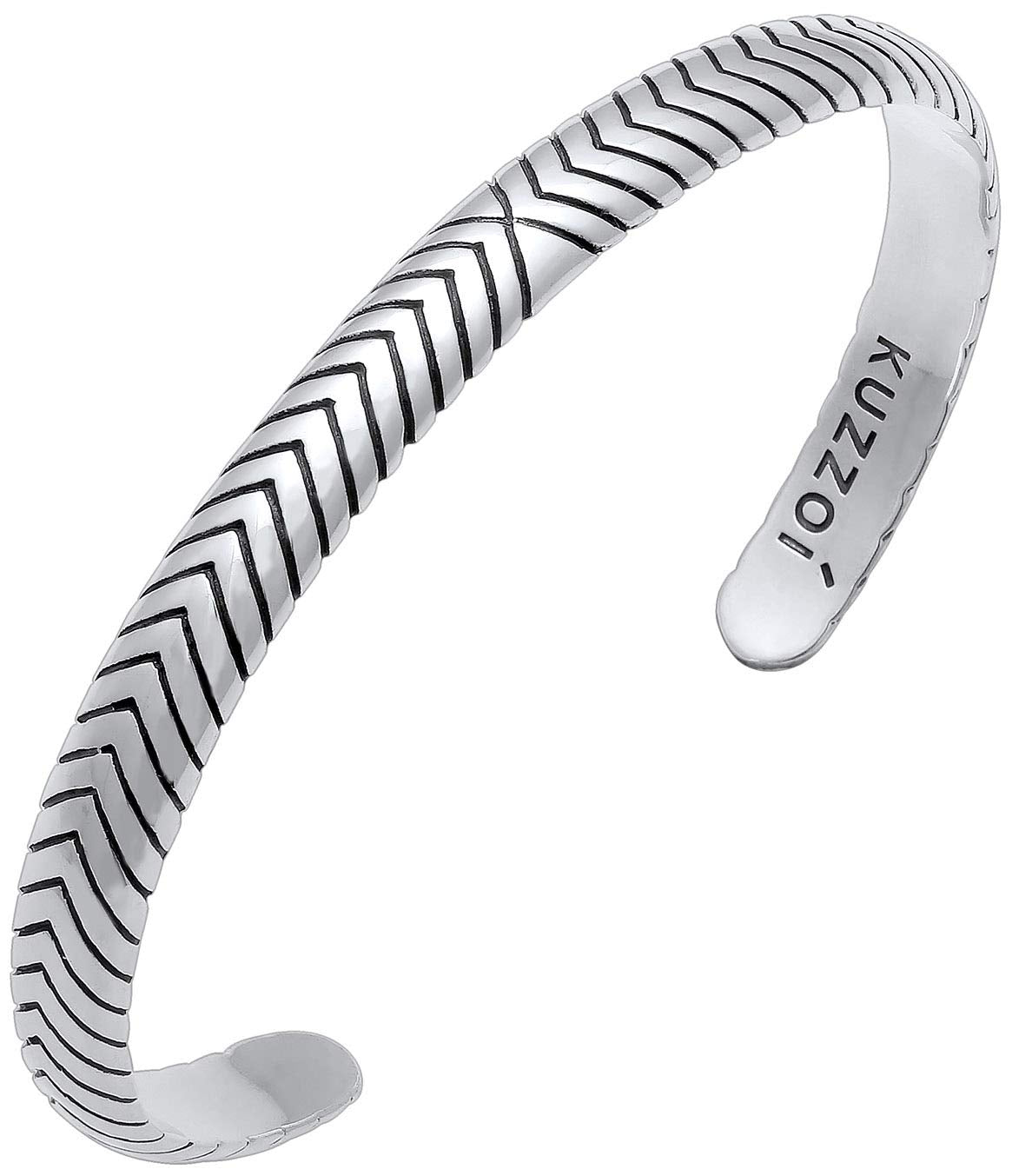 Kuzzoi Buddha 0212851118_19 Men's Silver Open Bangle Handmade from Real Solid 925 Sterling Silver Polished Luxury Bracelet Engraving for Men, 19 cm, 7 mm Wide, 22 g Heavy, 19 centimeters, Sterling