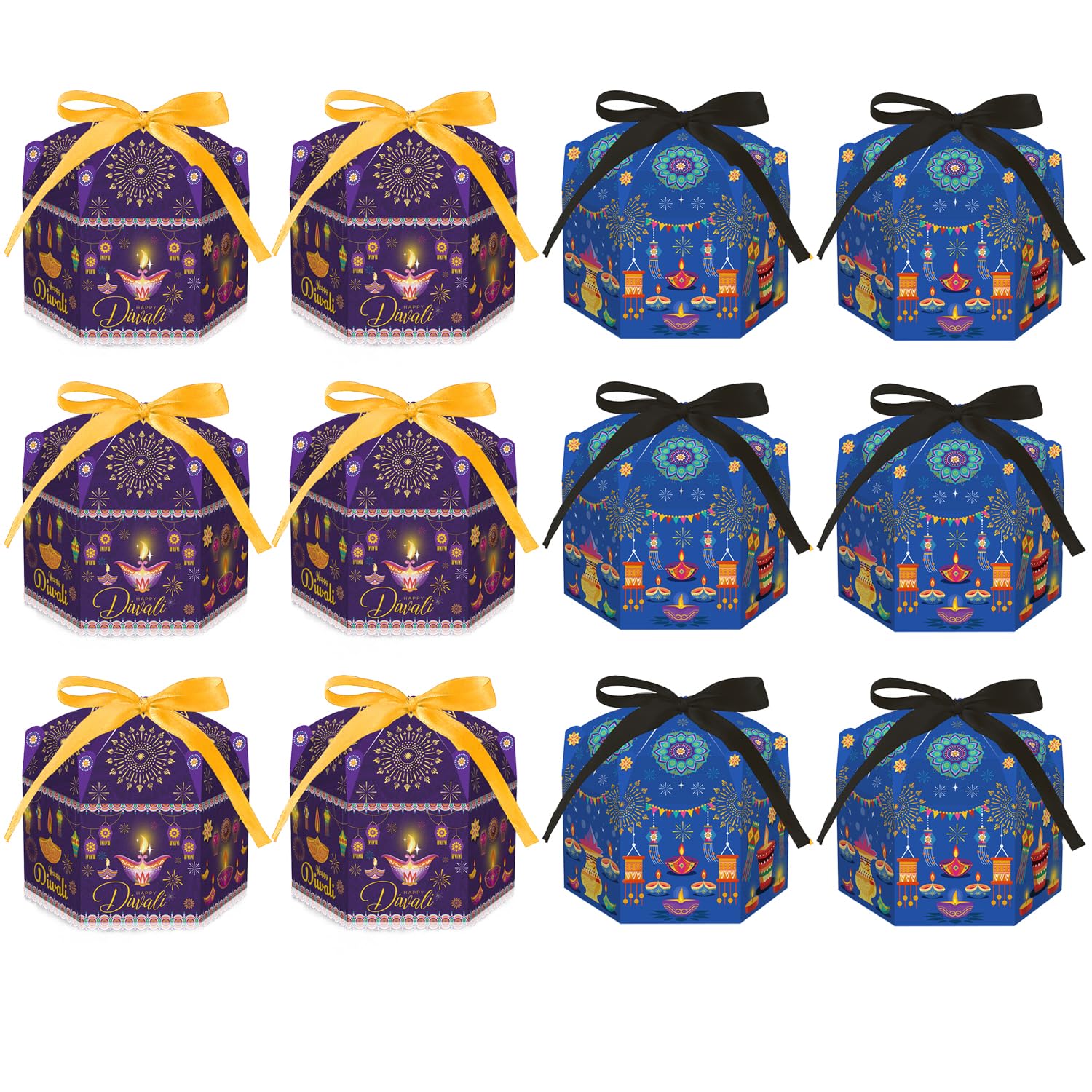 KYMY Diwali Treat Boxes, 12pcs Happy Diwali Goodie Candy Gift Boxes for Snack Sugar Chocolate, India Festival of Lights Gift Boxes, Diwali Decorations for India Festival Party Favor