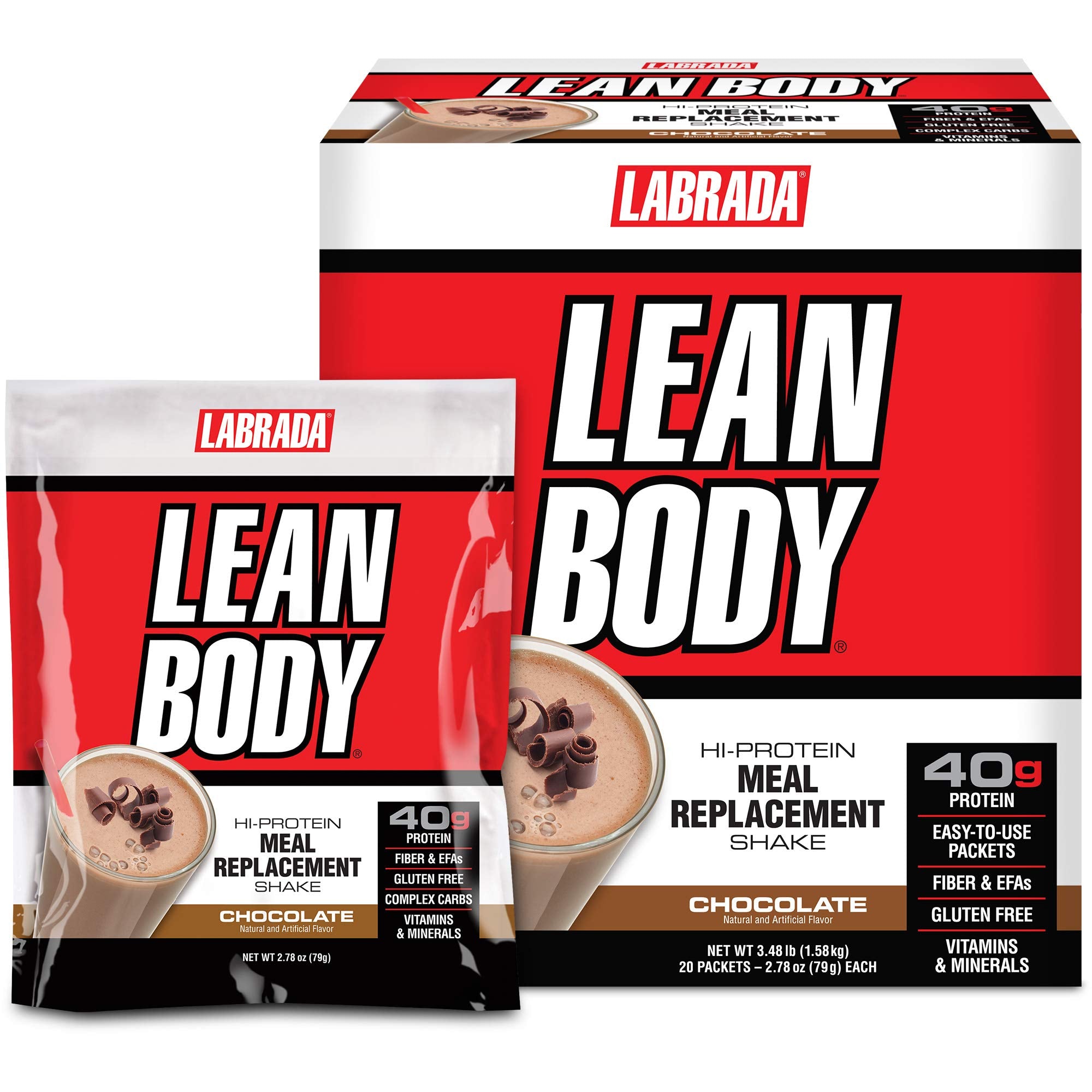 Labrada Nutrition Lean Body Hi-Protein Meal Replacement Shake, Chocolate, 2.78 Ounce (Pack of 20) Packets
