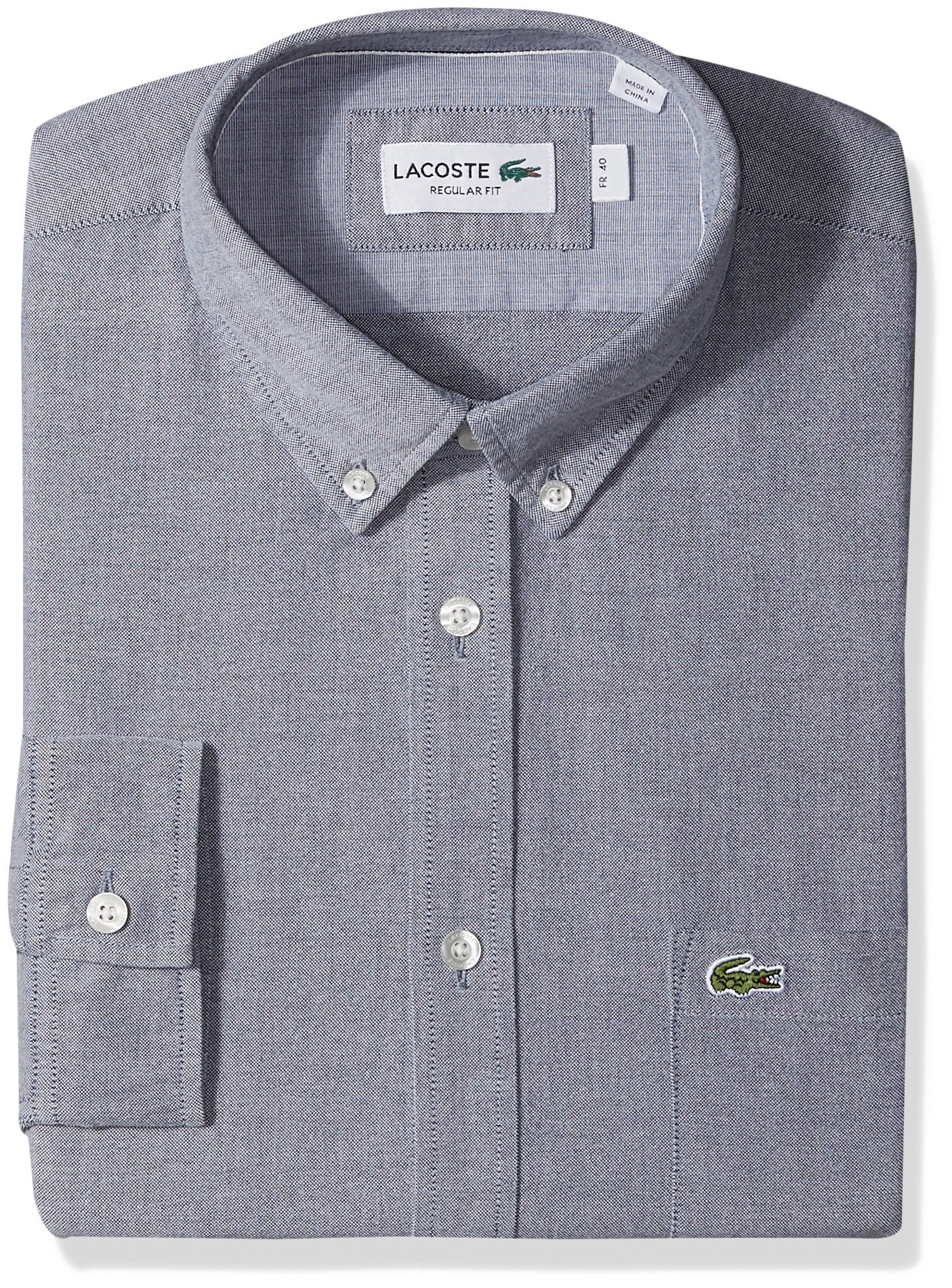 Lacoste Men's Long Sleeve Button Down with Pocket Oxford Solid Regular Fit, Navy Blue/White, X-Large