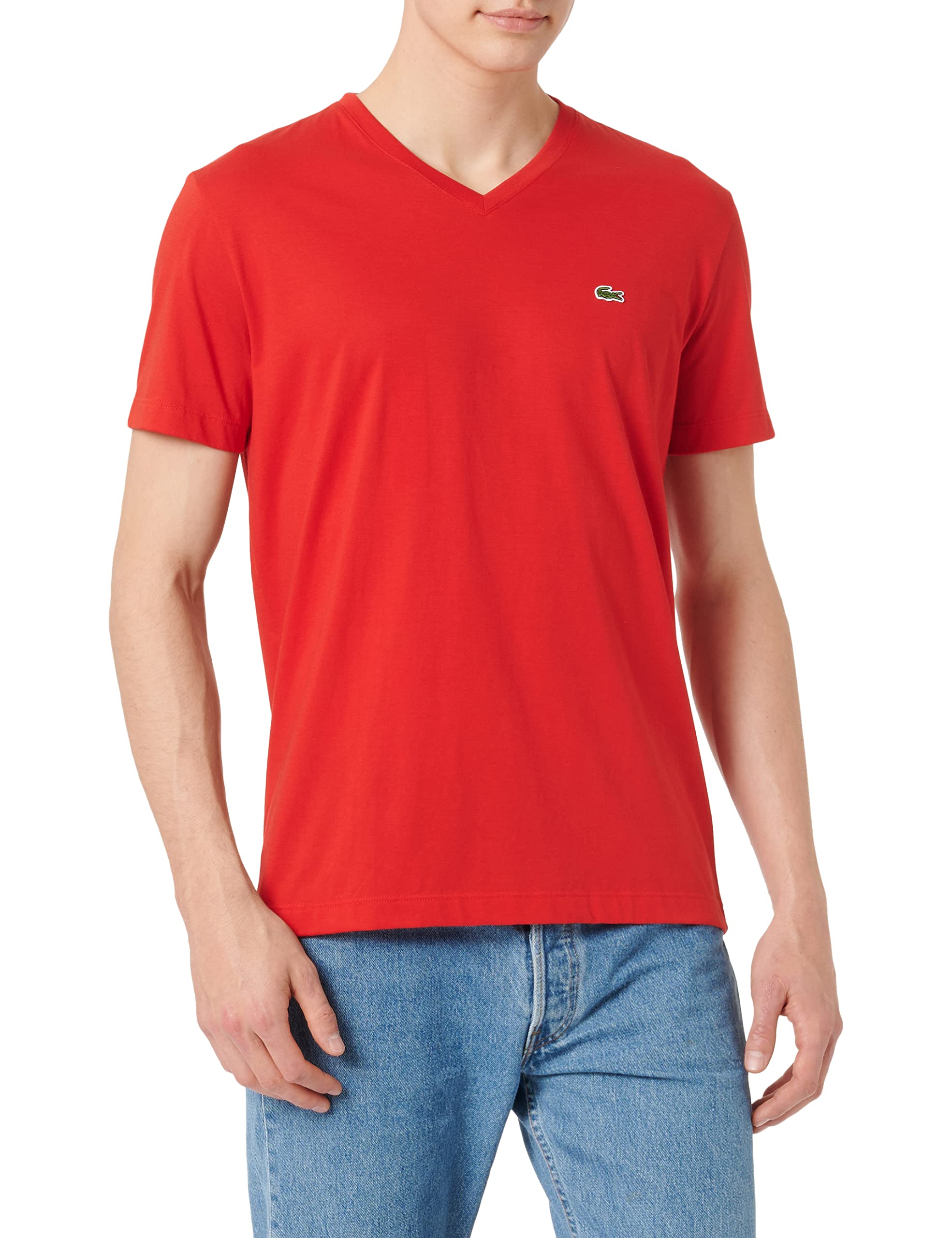 Lacoste Men's Short Sleeve V-Neck Pima Cotton Jersey T-Shirt, Red, X-Large