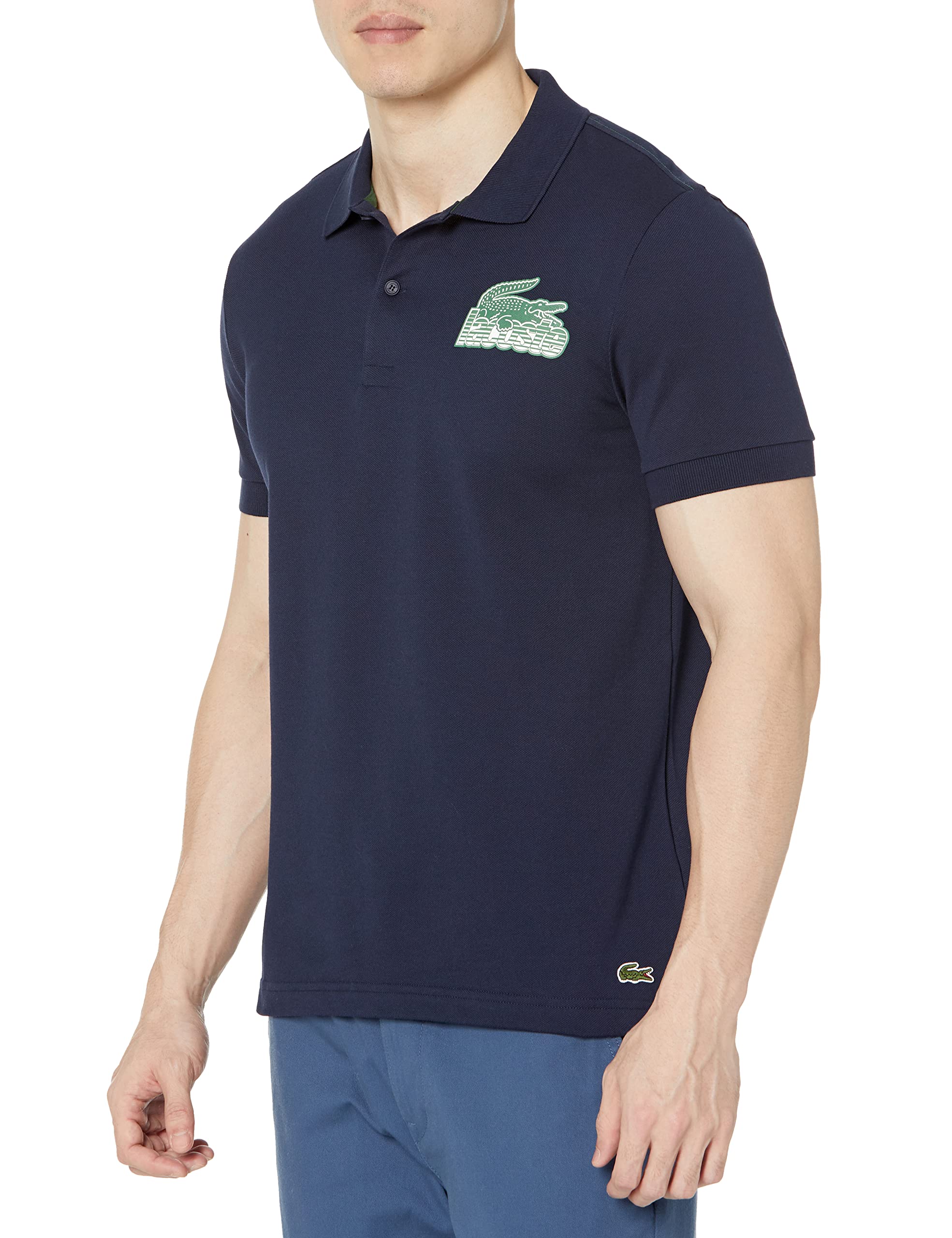 Lacoste Mens Contemporary Collections Short Sleeve Regular Fit Petit Pique Graphic Polo Shirt, Navy Blue, X-Large US