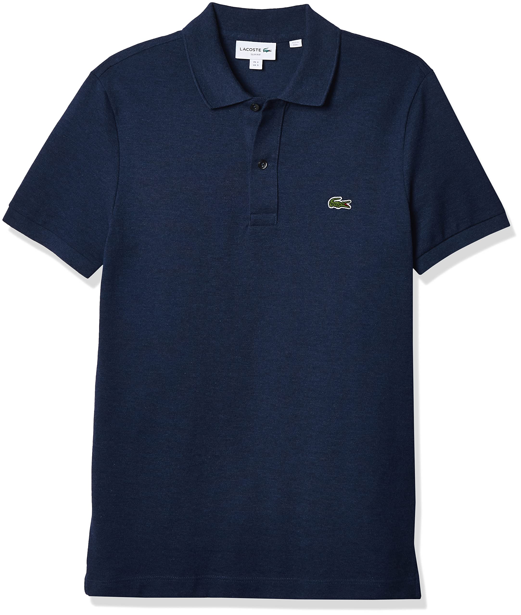 Lacoste Mens Legacy Classic Pique Slim Fit Short Sleeve Polo Shirt, Nocturnal Blue Heathered, Small
