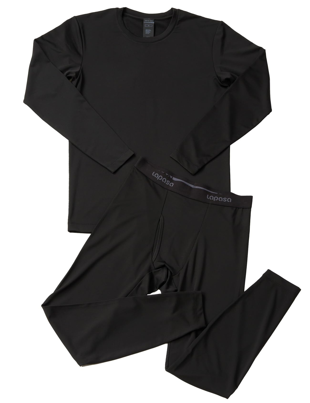 LAPASA Mens Midweight Thermal Underwear Set, Fleece Lined Base Layer Top and Bottom Long Sleeve Warm Long Johns M57, Black, M