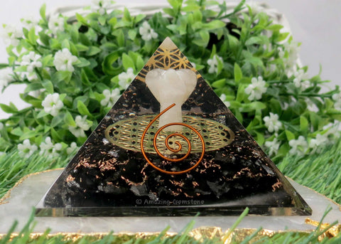 Large Orgone Pyramid | Shungite Pyramid Crystal | Crystal Angel with Flower of Life Orgonite Pyramid | Organ Pyramids Positive Energy Healing