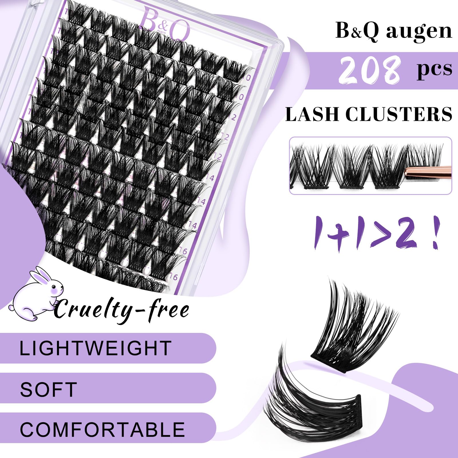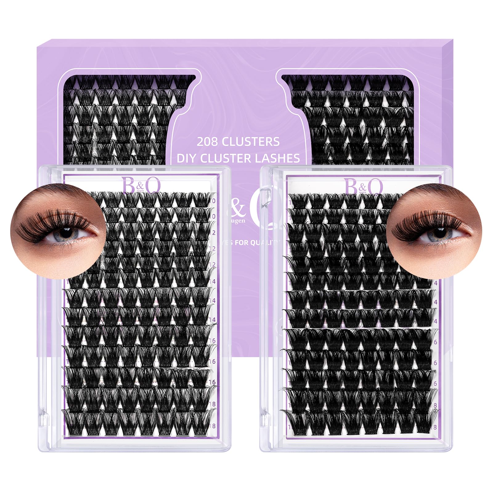 Lash Clusters 208 PCS Cluster Lashes Individual Lashes B05+B06 Eyelash Extensions 10-18mm DIY Lash Extensions D Curl Volume Wispy Soft Comfortable Band False Lashes (D-10-18MIX)