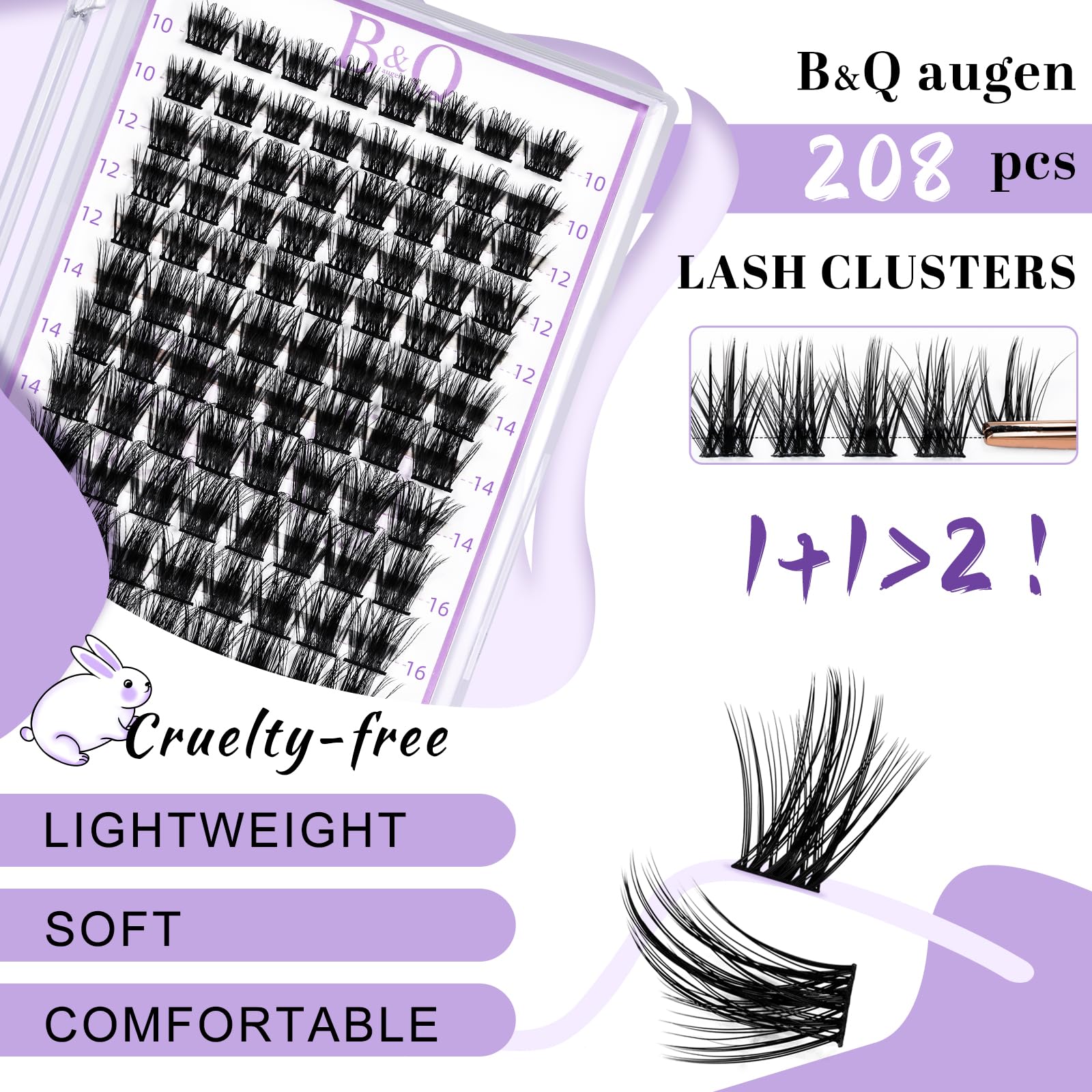 Lash Clusters 208 PCS Cluster Lashes Individual Lashes B28 Eyelash Extensions 10-18mm DIY Lash Extensions D Curl Volume Wispy Soft Comfortable Band False Lashes (D-10-18MIX,B28)