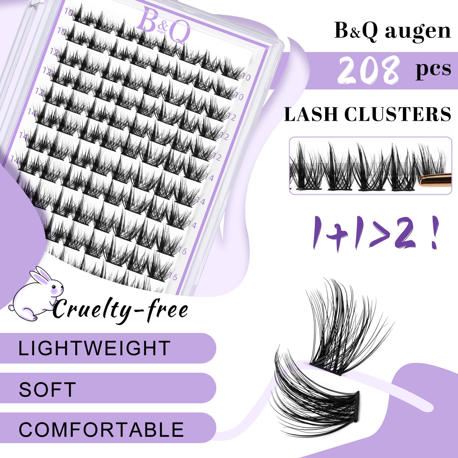 Lash Clusters 208 PCS Cluster Lashes Individual Lashes B43 Eyelash Extensions 10-18mm DIY Lash Extensions D Curl Volume Wispy Soft Comfortable Band False Lashes (D-10-18MIX,B43)