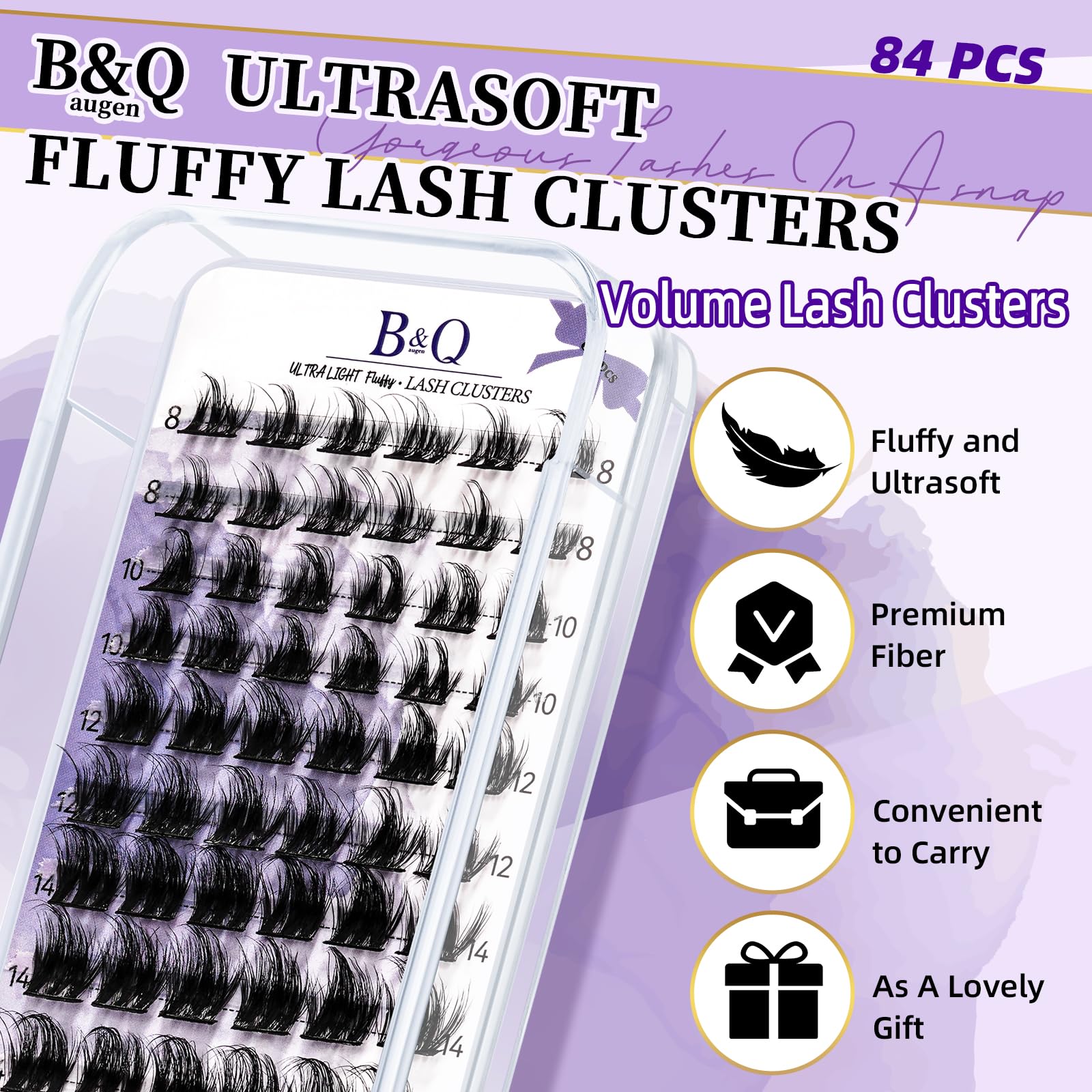 Lash Clusters Fluffy Individual Lashes 84 Pcs Ultralight Eyelash Clusters B&Q DIY Cluster Eyelash Extensions at Home Wispy Lash Extension Light as Feather Cluster Lashes (F02-D-8-18mm)