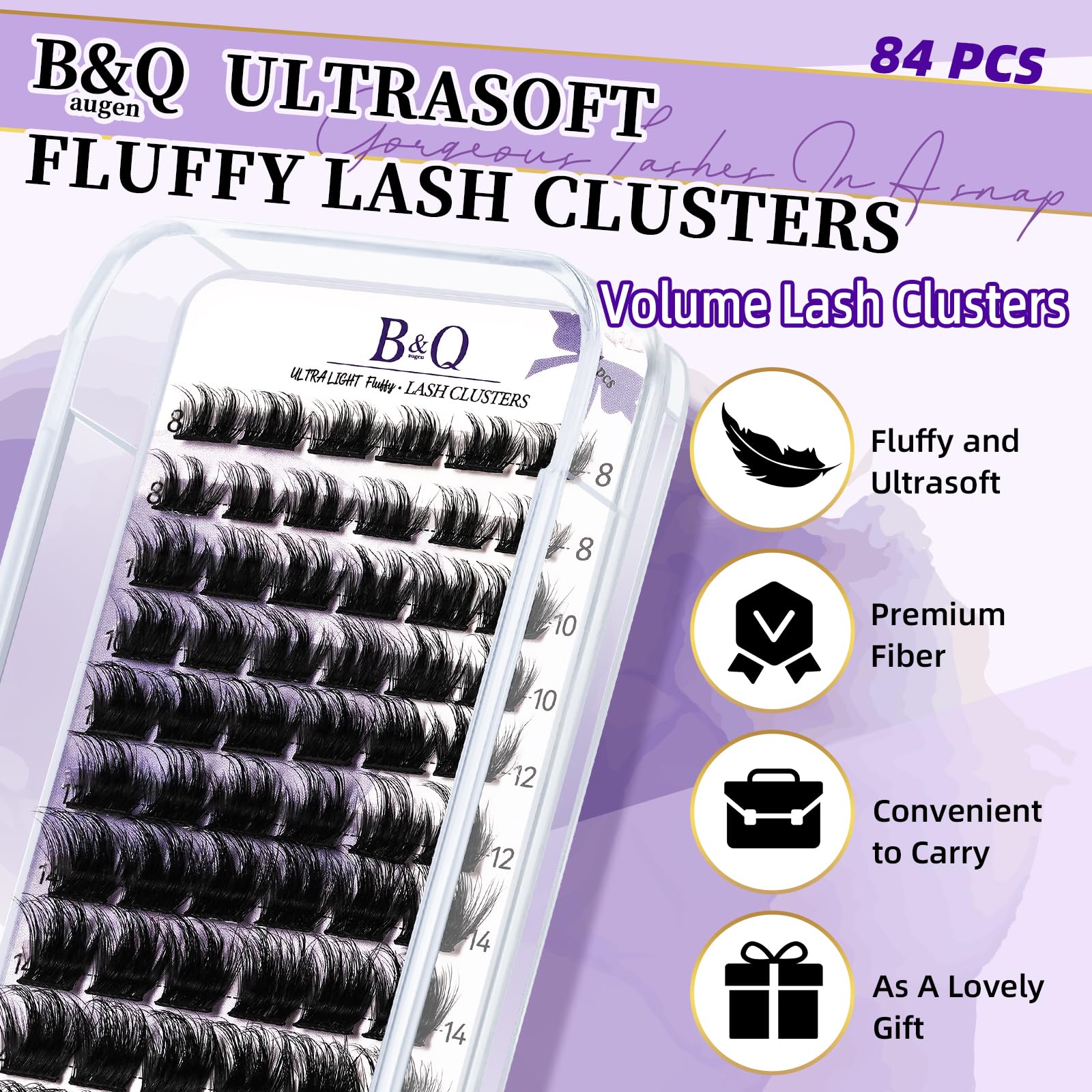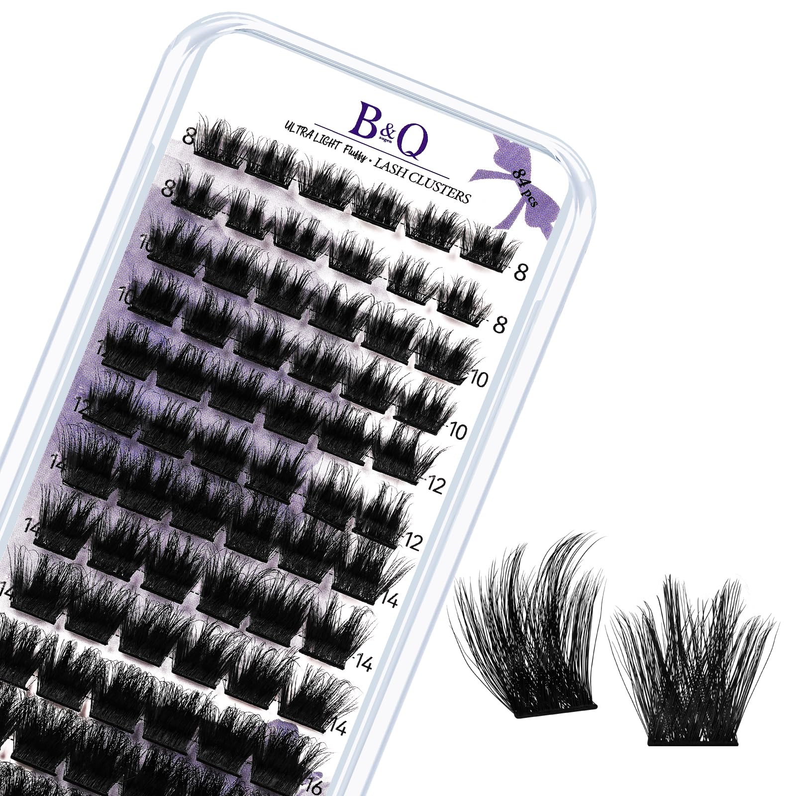 Lash Clusters Fluffy Individual Lashes 84 Pcs Ultralight Eyelash Clusters B&Q DIY Cluster Eyelash Extensions at Home Wispy Lash Extension Light as Feather Cluster Lashes (F03-C-8-18mm)