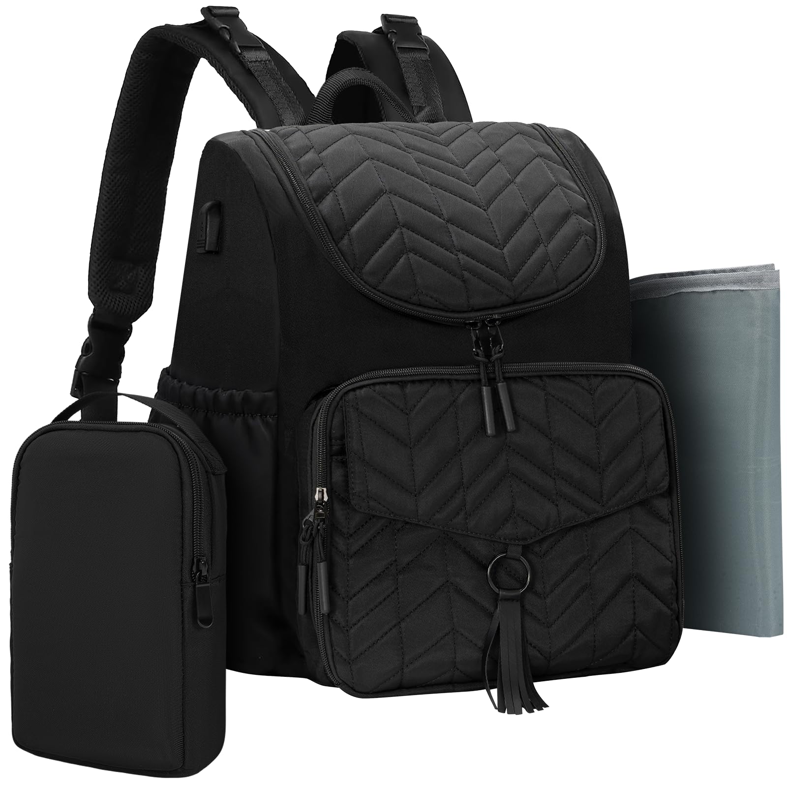 LASUK Diaper Bag Backpack, Water Resistant Travel Diaper Backpack with Washable Changing Pad, Pacifier Case, Stroller Strap, Black, S, Classic