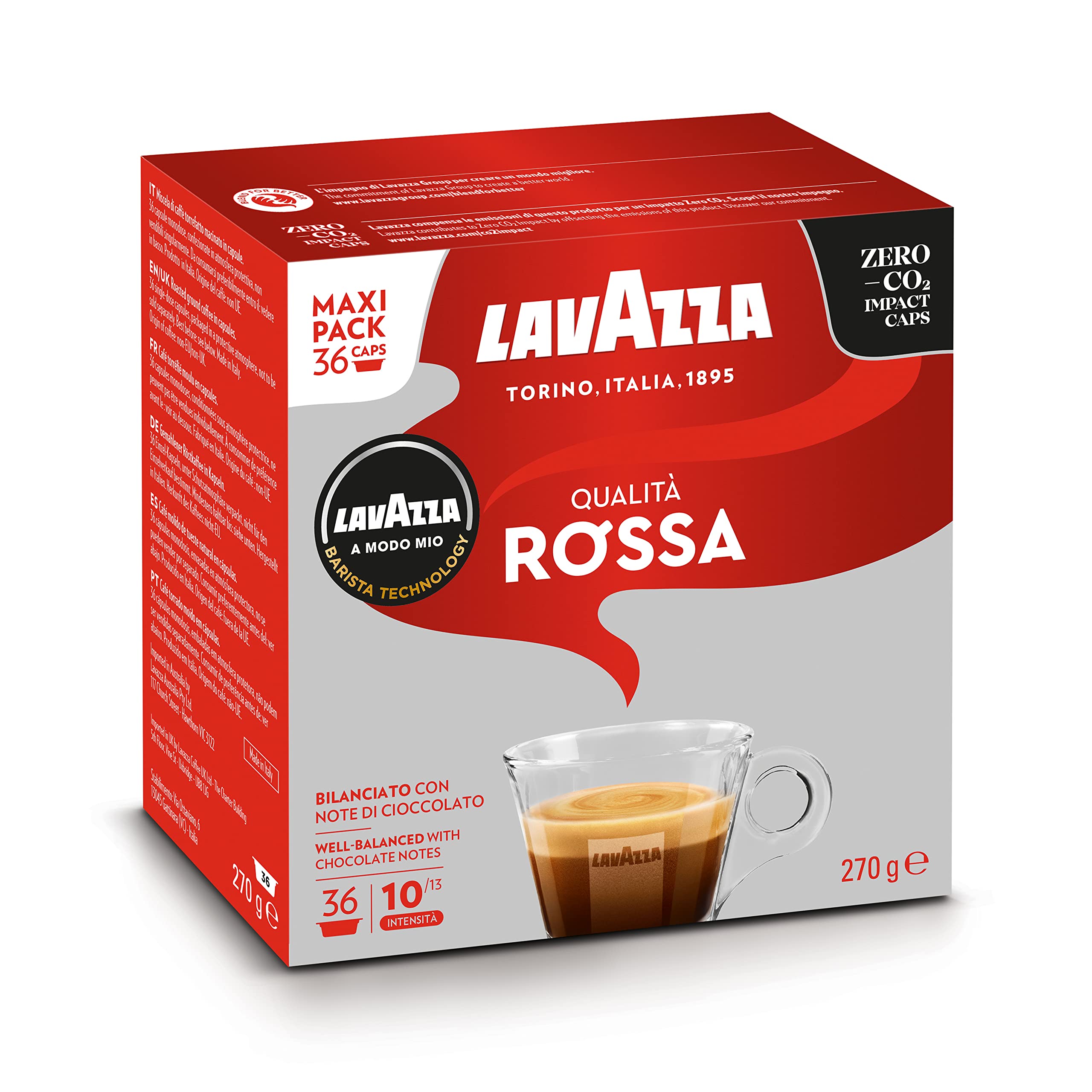 DescriptionProduct DescriptionA Modo Mio Qualità Rossa coffee capsules by Lavazza is born from the union of Brazilian Arabica and natural Robusta beans from South America, Africa. It is a well-balanced and full-bodied coffee with hints of chocolate and dried fruit. These coffee capsules consist of a fine Arabica and Robusta blend from South America and Africa. Each blend for A Modo Mio coffee pods is expertly selected, roasted and ground, as specified by quality standards. This coffee selection has a balanced and sustained taste and it is characterised by a level 10/13 intensity. These coffee capsules are perfect for a 40ml Espresso and they are also suitable for preparations with milk. 1 Pack of 36 Capsules.IngredientsItalian Ground CoffeeDirectionsTo be used with a Lavazza A Modo Mio MachinesSafety WarningTo be used with Lavazza A Modo Mio MachinesManufacturer Contact InformationLavazza Coffee (UK) Ltd, 5th Floor, The Charter Building, Charter Place, Uxbridge, UB8 1JG