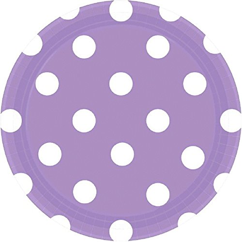 Enjoy a calming and fresh ambience when you complete your theme party with our Lavender Dots Disposable 7" Round Paper Plates.