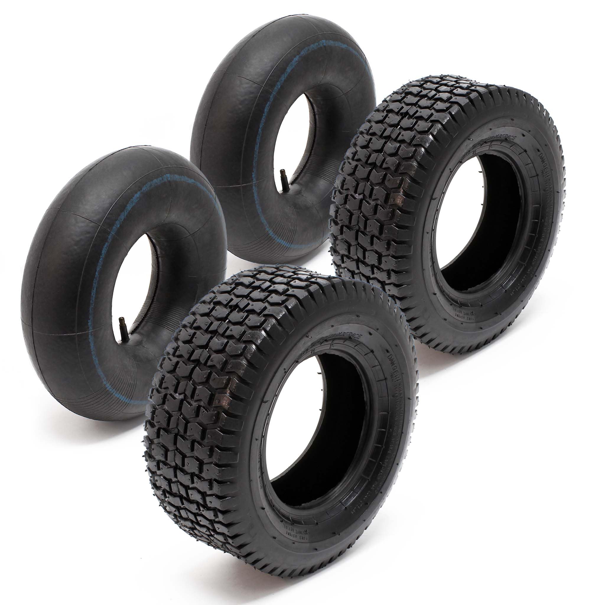 This practical set of 2 tyres and the suitable inner tubes has been specially developed for lawns and gardens and is suitable for ride-on lawn mowers and hand carts. Unlike conventional tyres, these tyres do not damage the lawn. Thanks to the block tread pattern, the pressure is distributed more evenly on the ground.