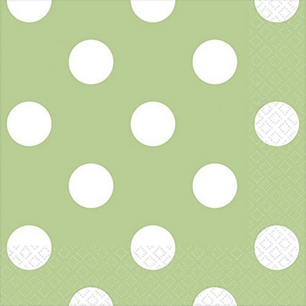 Add some design to the table with these Festive Leaf Green Dots Beverage Napkins! Our paper beverage napkins feature a green and white polka dot pattern. Each measures 5" x 5". Includes 16 per package.