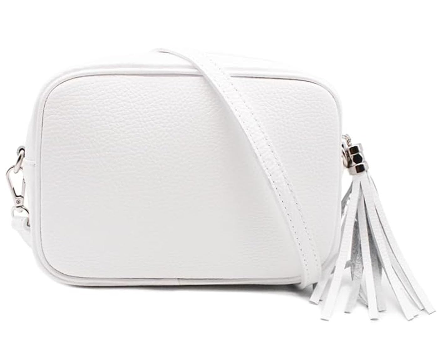 LeahWard Women's Real Leather Cross Body Bags Small Tassel Party Wedding Holiday Handbags J165 (White)