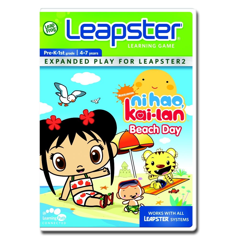 Product DescriptionLeapFrog Leapster Learning Game Ni Hao, Kai-lanFrom the ManufacturerJoin Kai-lan, YeYe and friends for a day at the beach Swim a race, play in the sand and take pictures to remember a wonderful day in the sun Features expanded play for Leapster2 system, so Leapster2 players can connect online for extra games, activities and rewards, and parents can get detailed learning progress reports through the online LeapFrog Learning Path. Appropriate for ages 4 to 7 years (grades pre-K to 1). Works only with Leapster and Leapster2 learning game systems. Teaches: • Early number sense • Phonics skills • Logic and reasoning skills • Memory skills