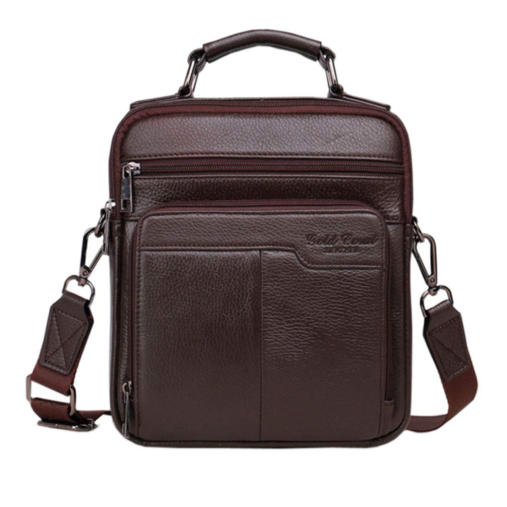 Leather Shoulder Messenger Bag for Men Business Travel Outdoor Crossbody Handbag Briefcase Wallet Phone Pouch Purse Casual Daypack Coffee