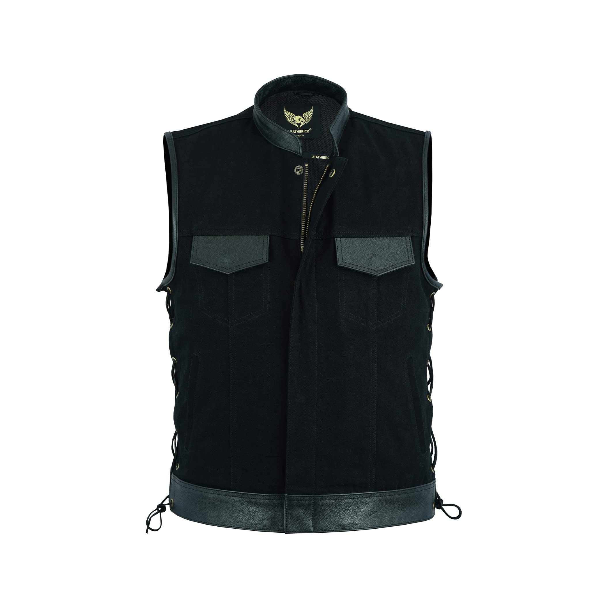 Two Deep Concealed Carry Pockets in this black denim vest helps you to keep your CCW safely with extra space for Magazine. Heavy fabric and dual stitching of pockets enables you to carry heavy things safely.Leatherick uses rust resistant zippers and snaps to complement this outfit.