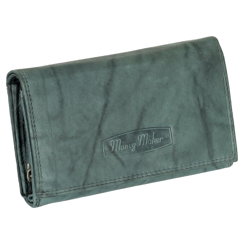 Ledershop24 Women's Leather Purse Long Various Colours Gift Set + Exclusive Keyring, black / grey, standard size, Modern