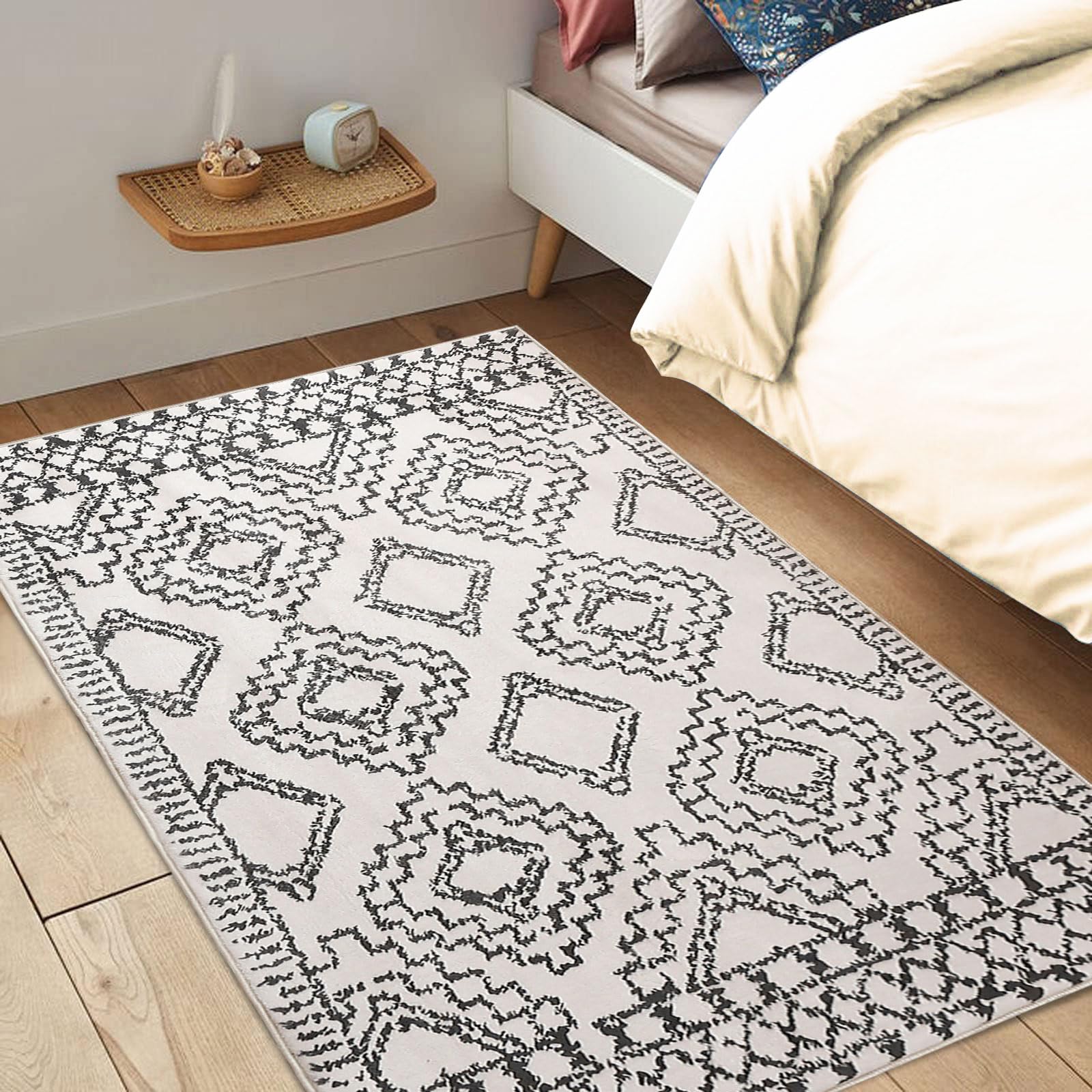 Leesentec Moroccan Area Rugs Living Room Rugs Modern Abstract Rug Geometric Carpet Non-slip Short Pile Rug Large Rugs for Living Room Soft Bedroom Area Rug (Ivory/Black, 80 * 120cm)