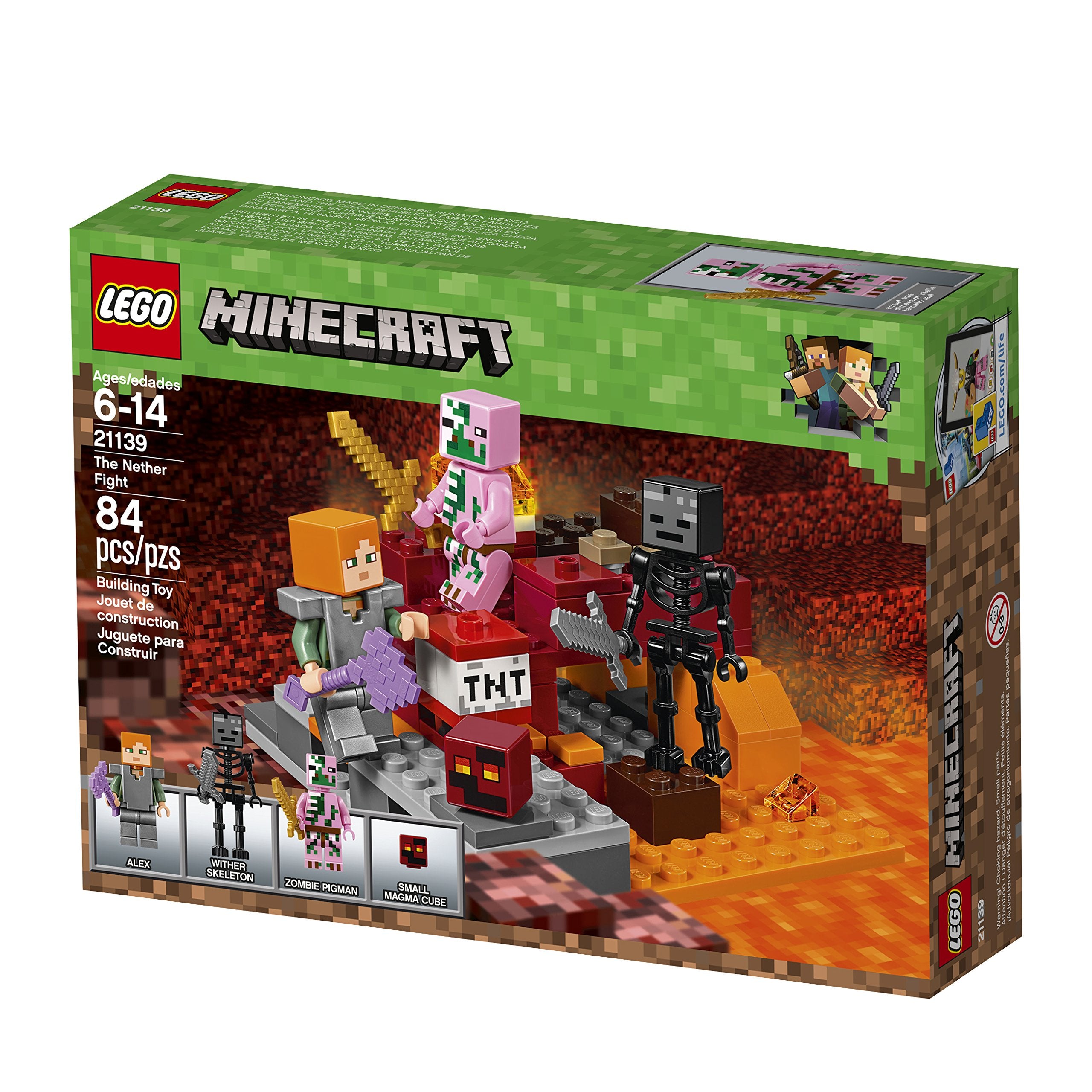 Head for the fiery Nether, activate the exploding TNT function and use your enchanted axe to defeat the zombie pigman and wither skeleton. Enjoy hands-on adventures with this LEGO Minecraft 21139 The Nether Fight set-designed for fans of the highly successful video game. Combine this set with other LEGO Minecraft models to create your own unique LEGO Minecraft universe. Also includes an Alex LEGO Minecraft minifigure.