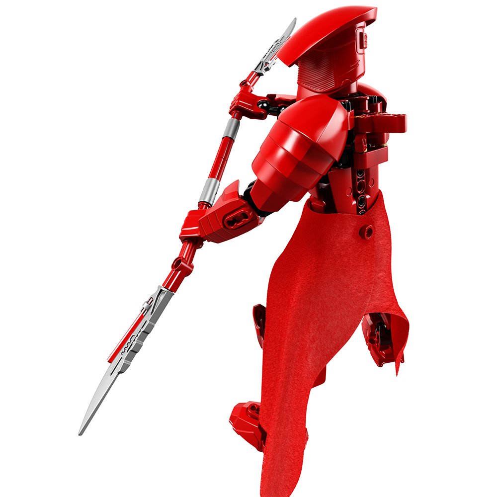 Defend the upper echelon of the First Order with this buildable and highly posable Elite Praetorian Guard figure. This imposing figure features red-armor detailing with textile skirt, unique helmet design, and chest and arm decoration. It also has a lever on the back to send the arms swinging, plus a double-handed bladed staff that splits in two for furious single-handed weapon combat. Fans of the First Order will love running into battle with this expert fighter.
