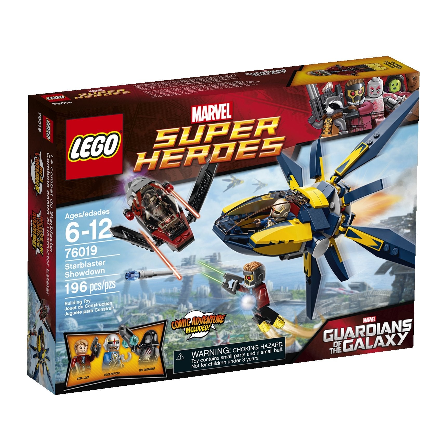 Launch into battle against the Sakaaran's Necrocraft in the awesome Starblaster and help Star-Lord to escape with the orb! Place the Nova officer in the cockpit and launch into the sky. Fold back the wings for high-speed pursuit mode and then flip them up to activate arrest mode. Use the space blasters and boot thrusters of Star-Lord to outwit the enemy and protect the priceless orb! Includes 3 minifigures with assorted weapons and accessories: Star-Lord, the Sakaaran and a Nova officer.