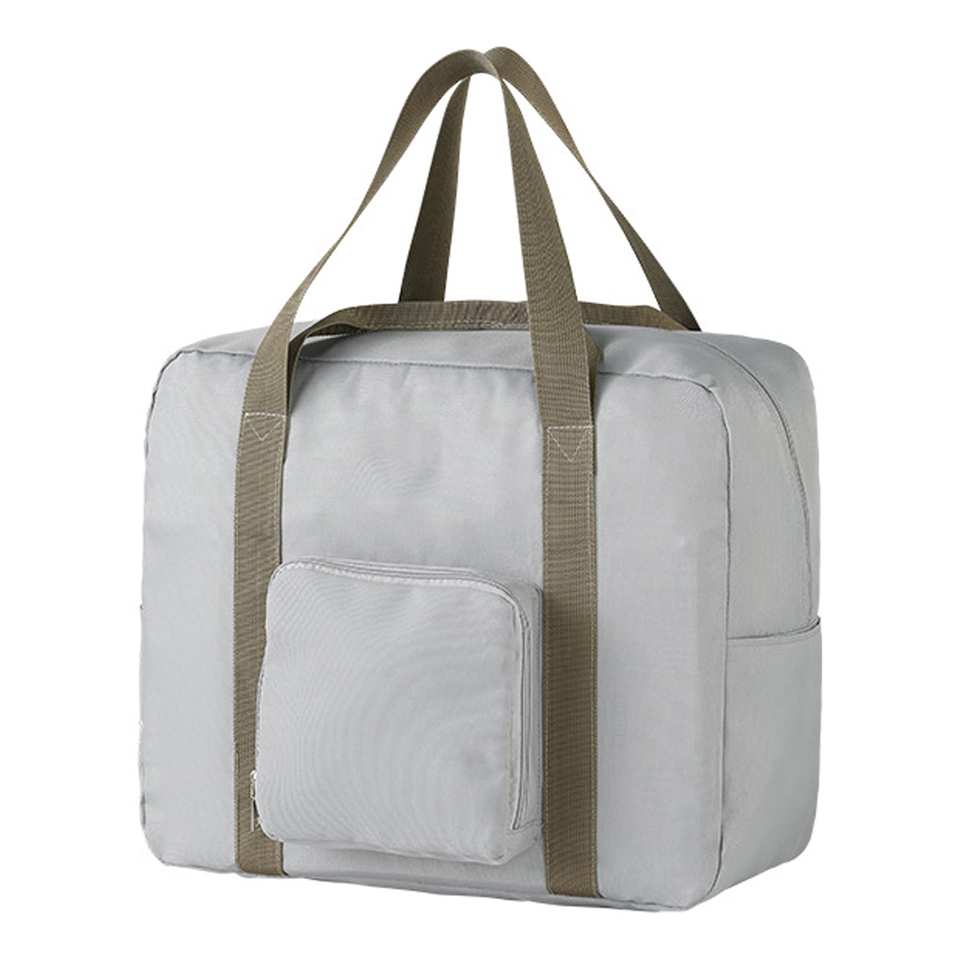 The bag is perfectly sized for small under-seat luggage for airlines and can be placed under your seat without paying extra baggage fees. It can be folded into a small bag when not in use and will not take up space in your luggage. Unfolded, it can be used as a clothing bag for travel, leaving space for valuables in your suitcase, or as a carry-on, and is of a moderate size that can be placed under an airline's seat or in an overhead bin in case your checked baggage is overweight. It can be slipped over the handle of a regular suitcase for easy carrying. Its external storage pockets provide quick access to small items. Available in two sizes, you can choose the right size for your travel needs.