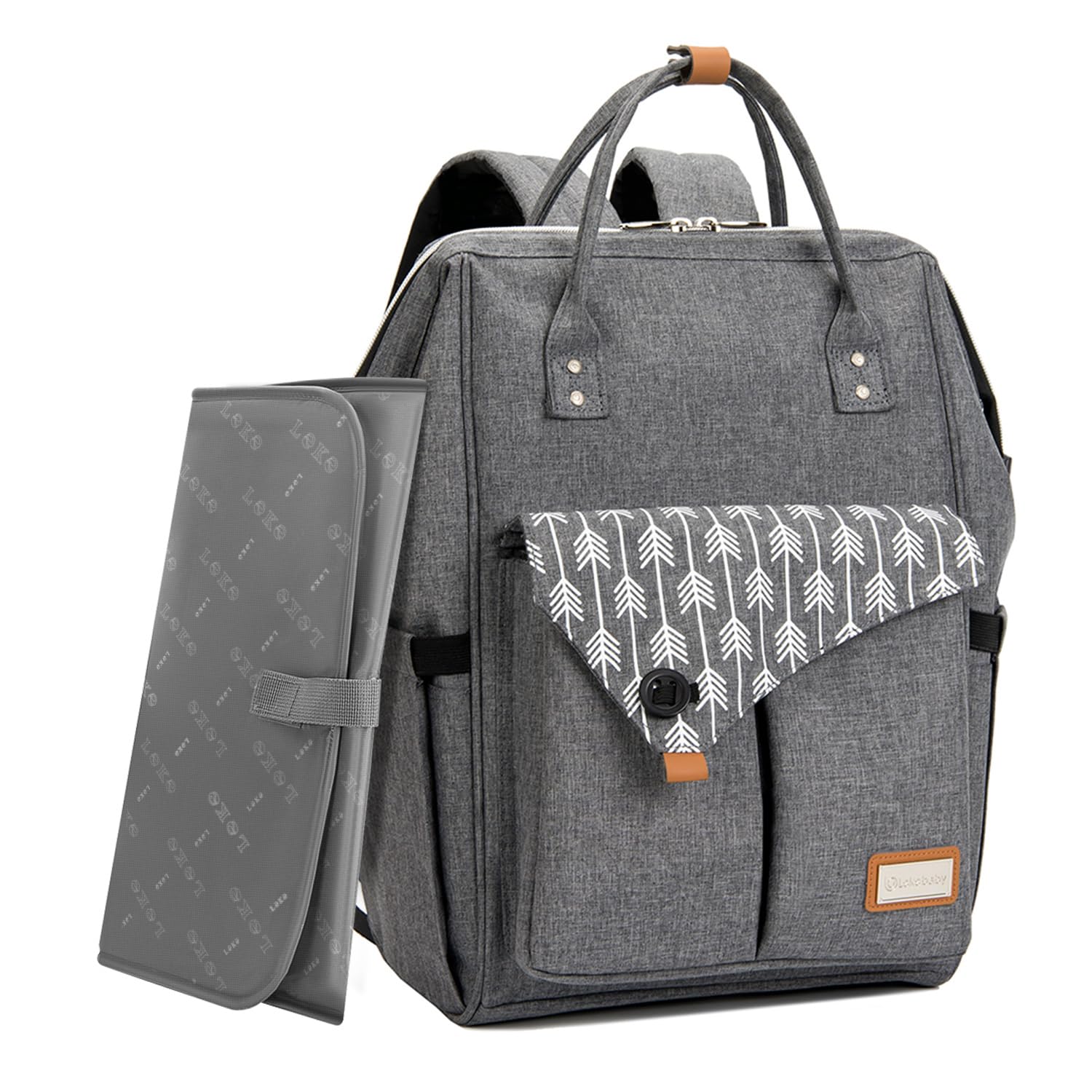 Lekebaby Nappy Changing Bag Backpack with Changing Mat, Arrow Print, Grey