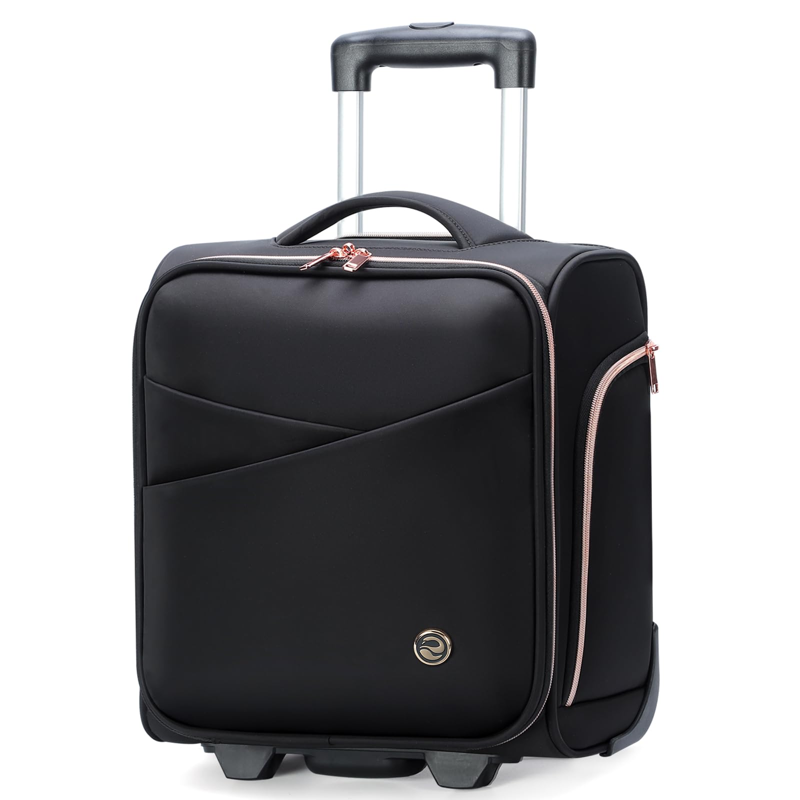 The business trolley is made of durable and high-quality water-repellent nylon material. Spacious compartments provide separate space for your 14" computer, iPad, files, wallets, clothes and all your belongings. The padded laptop compartment provides perfect protection for your laptop from accidental bumps and knocks. The perfect size fits easily into most airline luggage compartments and meets most carry-on size requirements. With the well-knitted "luggage strap", you can easily attach the rolling laptop bag to the trolley of your luggage to make your travel and business trips more convenient.
